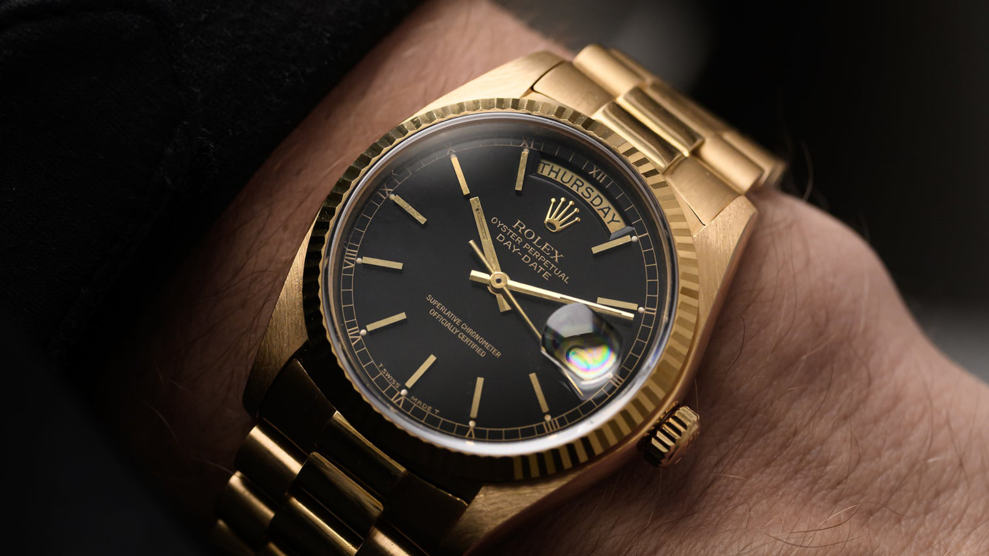 دعونا نجري بعض العمليات الحسابية البسيطة لما تعنيه هذه الزيادة بالنسبة للسعر النهائي للساعة... على سبيل المثال، تزن ساعة رولكس داي ديت الكلاسيكية المصنوعة من الذهب الأصفر عيار 18 قيراطًا والمُرتبطة بسوار بريزيدنت حوالي 120-130 جم. أي حوالي 2.5 أوقية (75 غرام) من الذهب الخالص[6]. وفي عام 1970، بلغت القيمة المادية للساعة حوالي 87 دولارًا أمريكيًا... وفي عام 1980، ارتفع هذا السعر إلى حوالي 1,667 دولارًا أمريكيًا. وعلى مدار الفترة نفسها، ارتفع سعر التجزئة لساعة 1803 Day-Date من 1,850 دولارًا (1973) إلى 7,950 دولارًا (1980)[7]. وهذا يعني زيادة حوالي 8 أضعاف للذهب (1973-80) مقابل زيادة "4 أضعاف فقط" في سعر التجزئة.