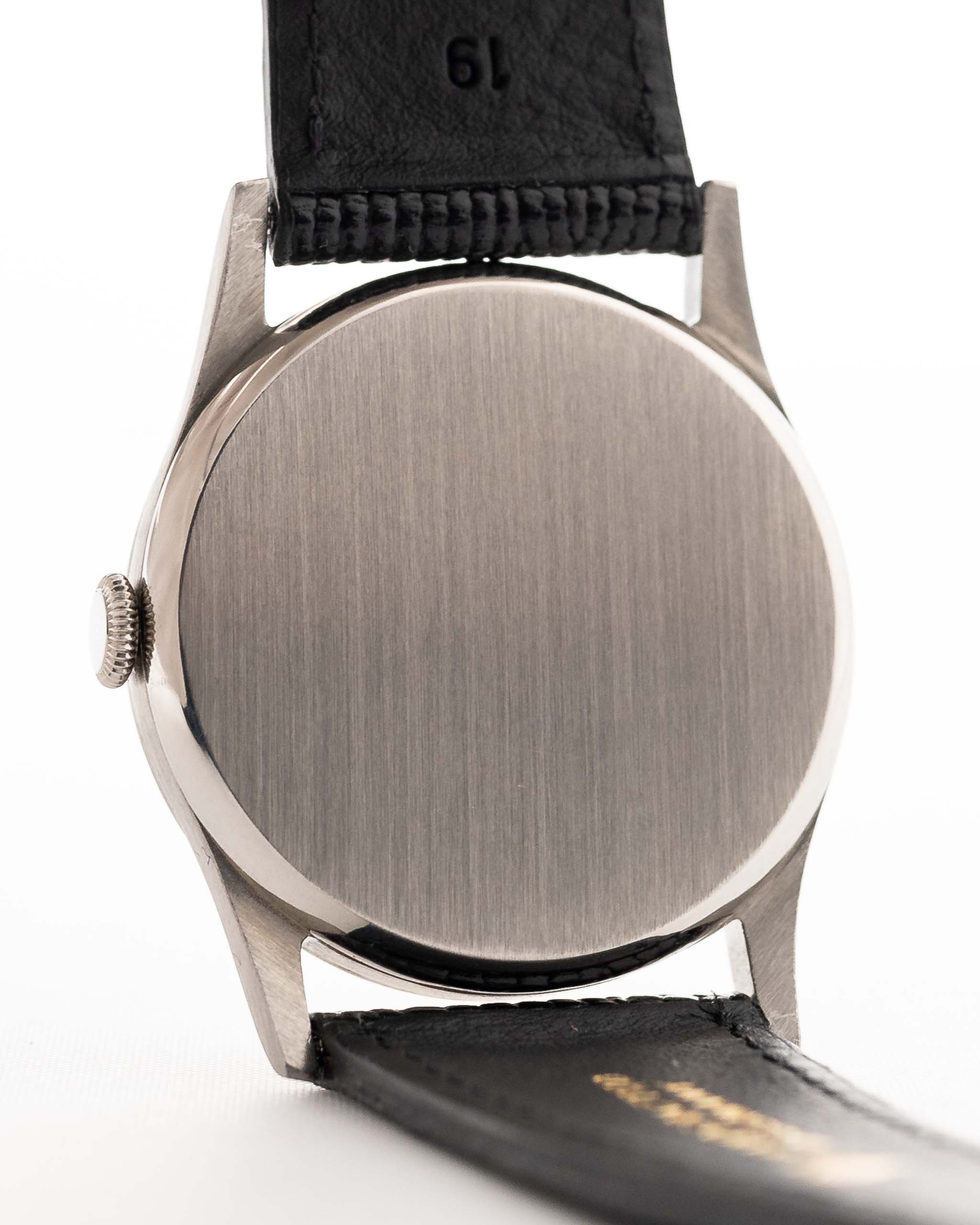 This early IWC dress watch from 1940 is a masterclass in Swiss understatement — where mechanical purity meets refined design. Its beautifully shaped downturned lugs give the stainless steel case a more sculptural presence on the wrist, and the original silver dial with sub seconds at six o’clock embodies a timeless sense of balance and symmetry.