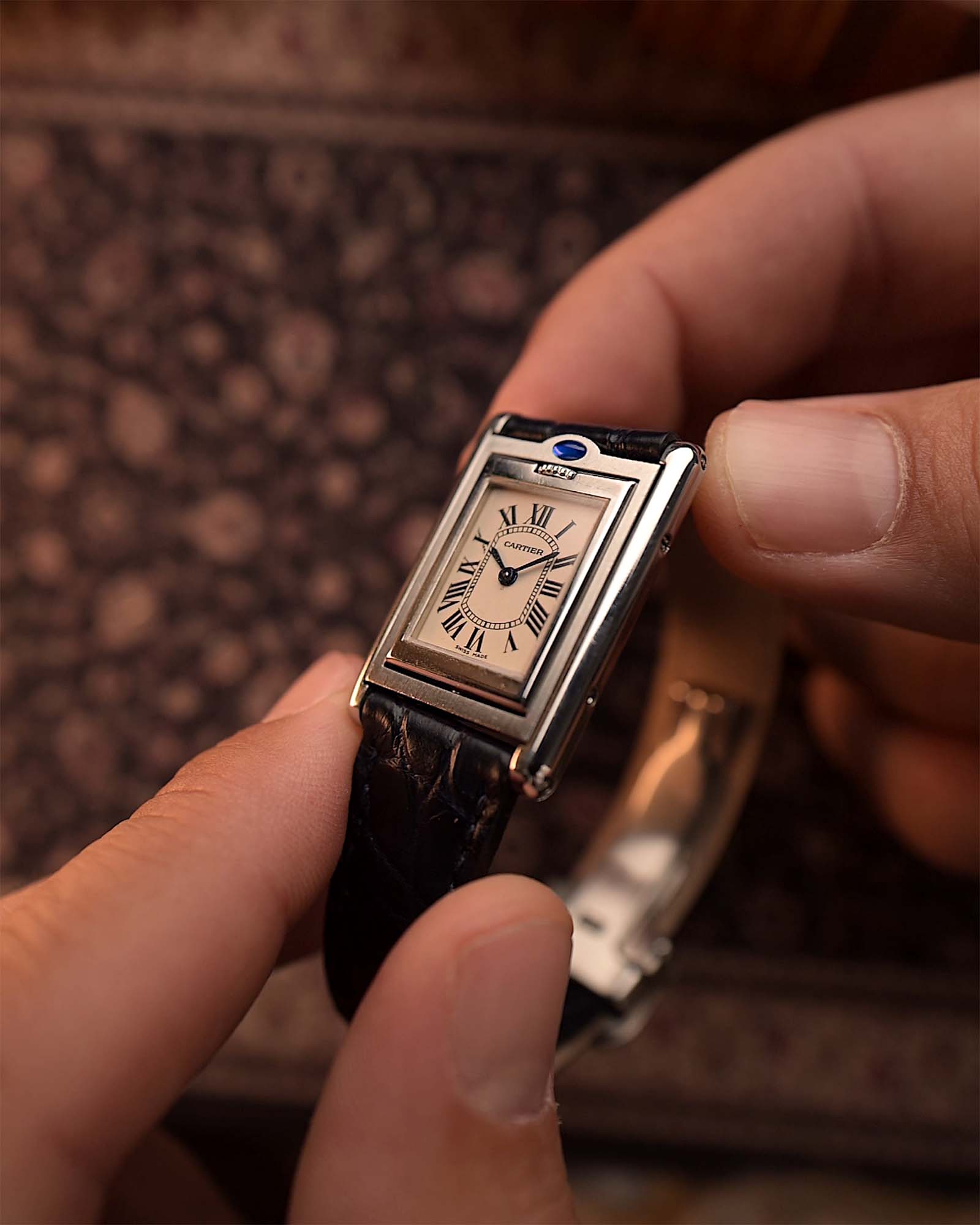 أن ترتدي ساعة كارتييه عتيقة يعني أن تفهم أن القليل غالباً ما يكون أكثر. إنها لهواة جمع الساعات الذين لا يحتاجون إلى ضوضاء ليشعروا بالحضور. الشخص الذي يرى الجمال الخالد في الأرقام الرومانية، ومسارات الدقائق، وعقارب السيف ذات اللون الأزرق الحراري.