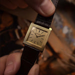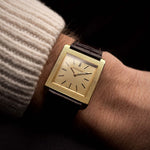 تعد ساعة Jaeger-LeCoultre الأنيقة هذه من سبعينيات القرن الماضي تعبيراً جميلاً عن الساعات الفاخرة البسيطة. صُنعت من الذهب الأصفر عيار 18 قيراطاً، وتتميز بإطار ومينا متناسقين من طراز Clous de Paris (مسمار حديدي)، مع علامات ساعات سوداء مطبقة وعقارب أنيقة.