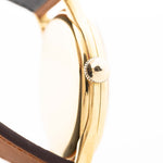 تُجسّد هذه الساعة ذات الرقم 2317/3 من عام 1944، تجسّد البساطة الراقية التي كانت سائدة في تلك الحقبة، حيث تشعّ علبة الساعة المعبأة بالذهب بقطر 35 مم ومينا ذهبي لم يُمسّ بعد بالدفء والشخصية. ويخلق التحول اللوني الطفيف بين الحلقة المركزية والحلقة الخارجية، إلى جانب العقارب النحيلة ذات الأوراق الذهبية والمؤشرات الأنيقة، مينا بعمق وتناسق عتيق حقيقي.