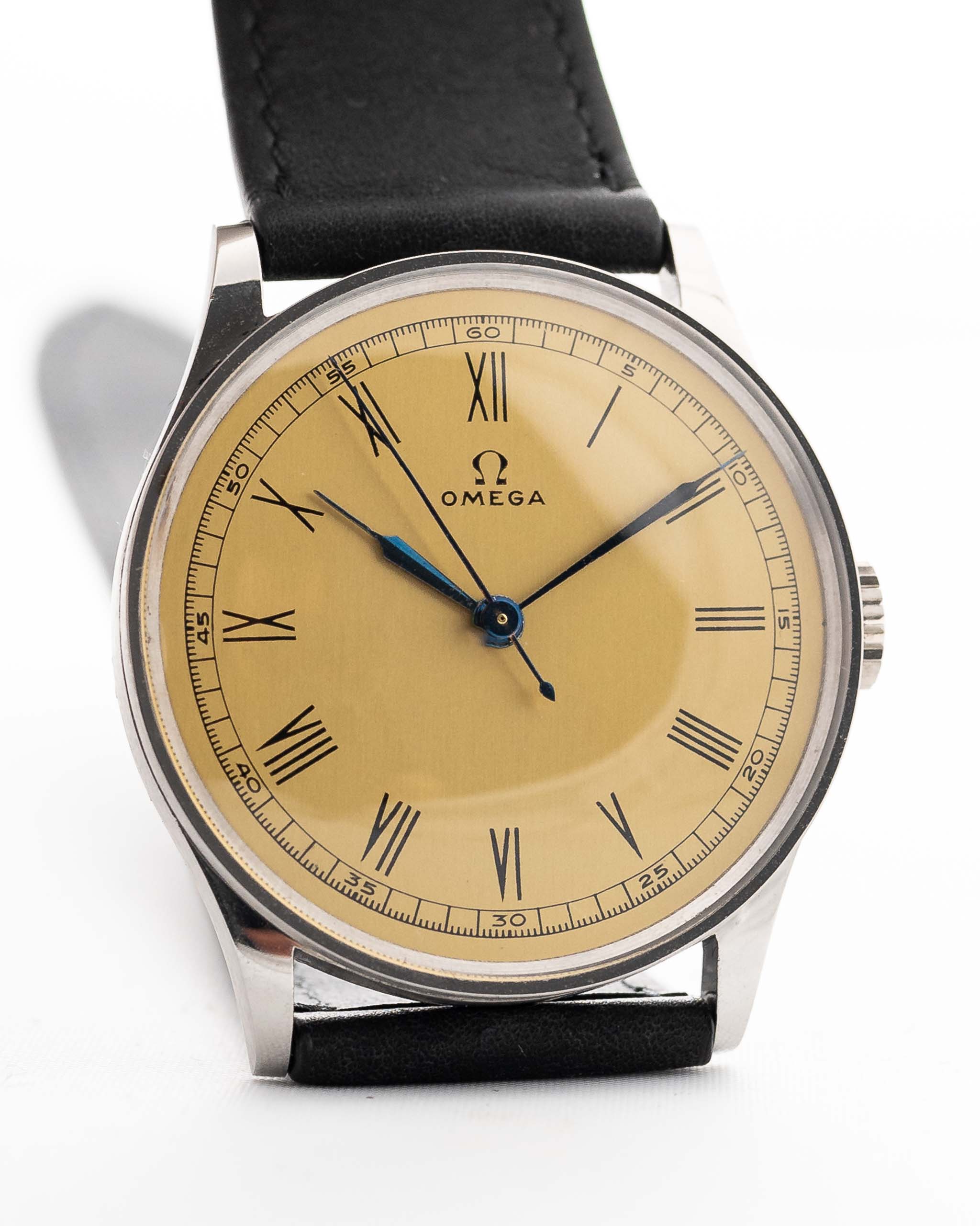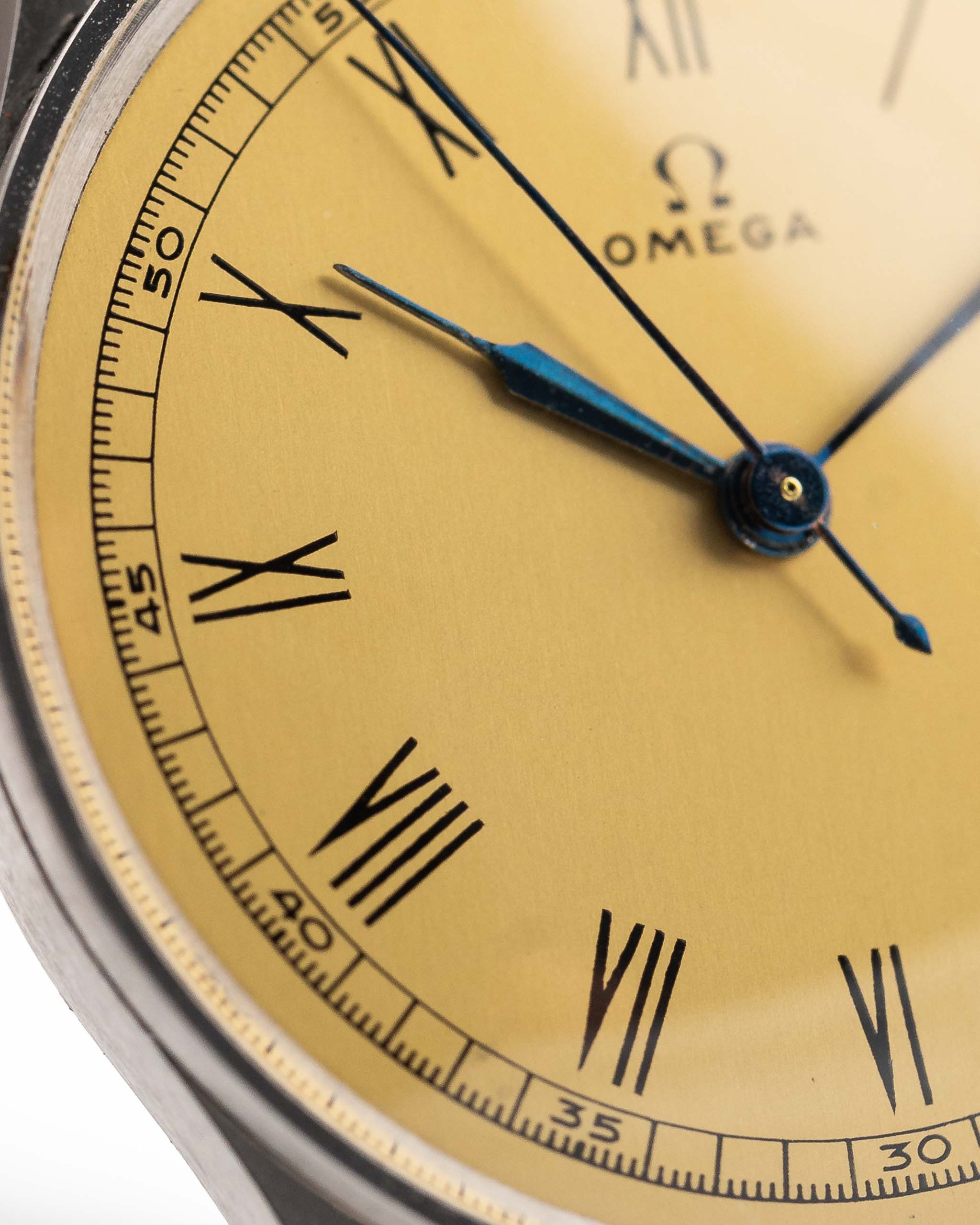 من الصعب العثور على ساعة أوميغا من ثلاثينيات القرن العشرين في حالة رائعة، ولكن العثور على ساعة بميناء ذهبي جميل لا تشوبه شائبة، وأرقام رومانية من طراز آرت ديكو وعقارب حقنة من الفولاذ الأزرق المطابق أمر شبه مستحيل.