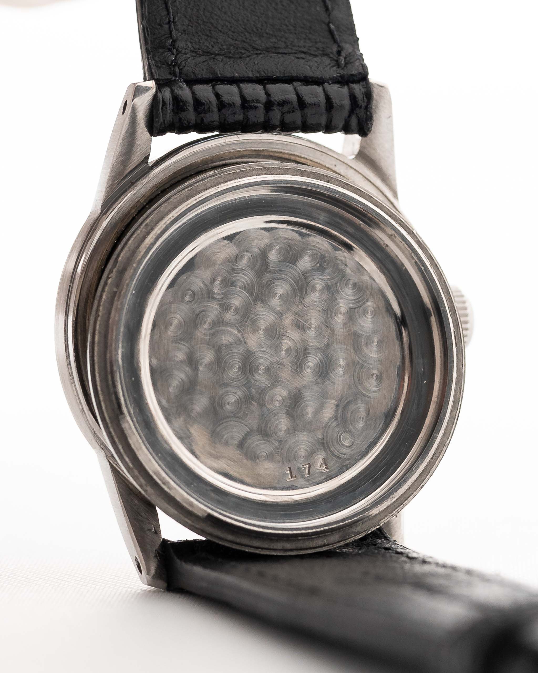 تجسّد هذه الساعة النادرة من أوميغا لعام 1939 روح فن الآرت ديكو المتأخر بميناها الفضي الخالي من العيوب ومسار الدقائق الدقيق للسكك الحديدية وعقارب بريغيت الفولاذية الزرقاء الجميلة. ويتعزز تصميم الميناء المتوازن تمامًا من خلال سجل الثواني الفرعي عند ستة - تصميم كلاسيكي في أرقى صوره.