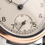 وتتميز علبتها الحادة المصنوعة من الفولاذ المقاوم للصدأ بقطر 28.5 مم بإطار أنيق من الذهب الوردي الذي يضفي تباينًا دقيقًا وسحرًا عتيقًا. كما أن أبعادها الأنيقة وحجمها النادر يجعلها قطعة مثالية لهواة جمع الساعات الذين يقدّرون الرقي دون تباهٍ.
