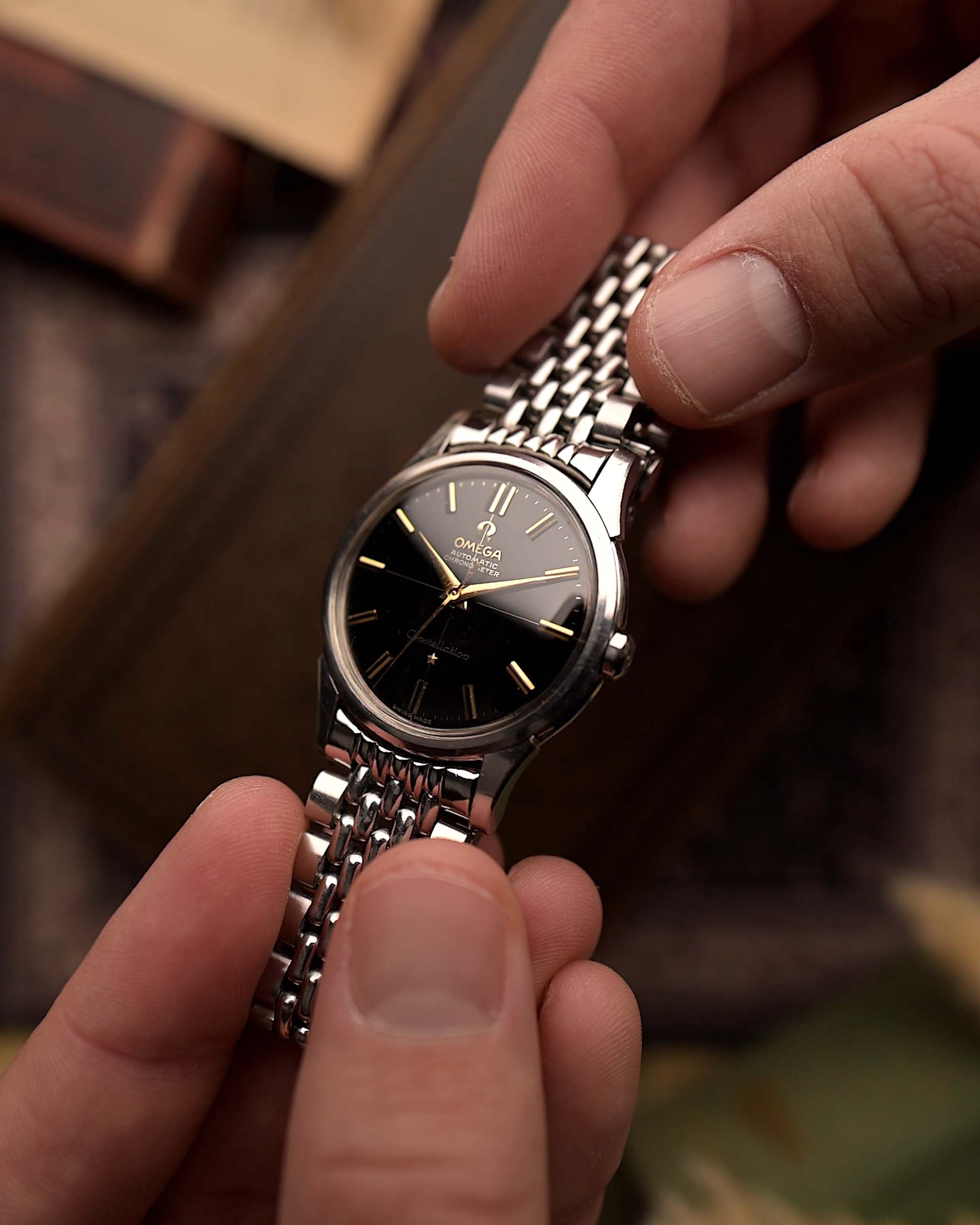 كرونومتر راقي من العصر الذهبي لأوميغا — غني بالدقة والتناسب والاتزان. هذا الساعة أوميغا كونستيلايشن رقم 14381، التي تم إنتاجها في عام 1961، تجسد الرقي الخالد الذي جعل خط كونستيلايشن أحد الإنجازات البارزة لأوميغا.