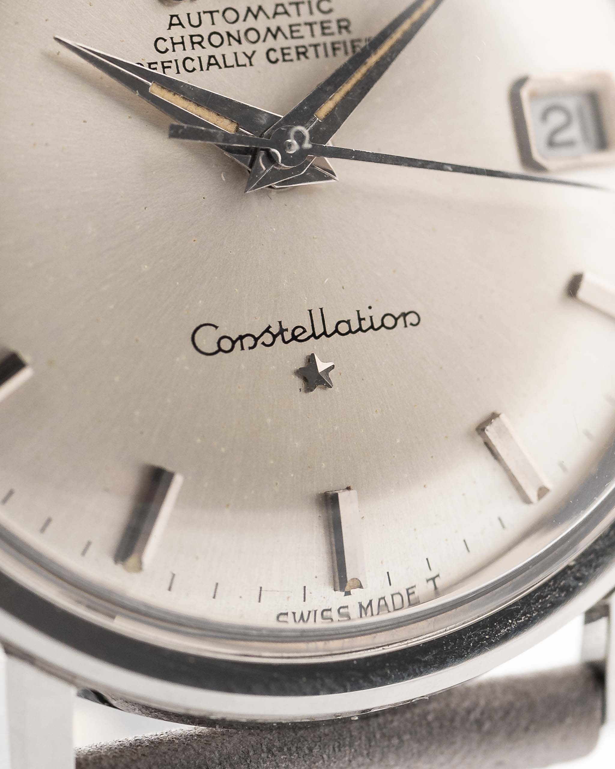 تتميز ساعة كونستيليشن هذه، المتناسقة والبسيطة والكلاسيكية، بظهر علبة خلفي مثبت لولبيًا وكرونومتر أوميغا الأوتوماتيكي عيار 561 وعروات رائعة بزاوية مائلة قليلاً.