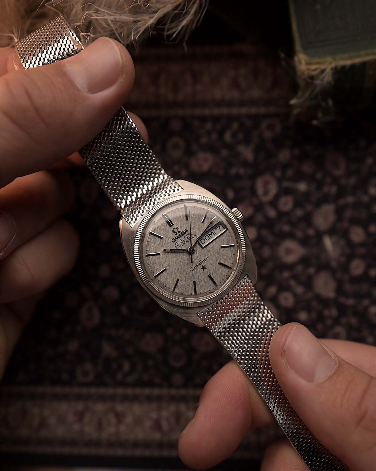 Omega Constellation 168.019 18k – Linen Dial, 1968 - A Rare White Gold Beauty with Milanese Bracelet Elegance