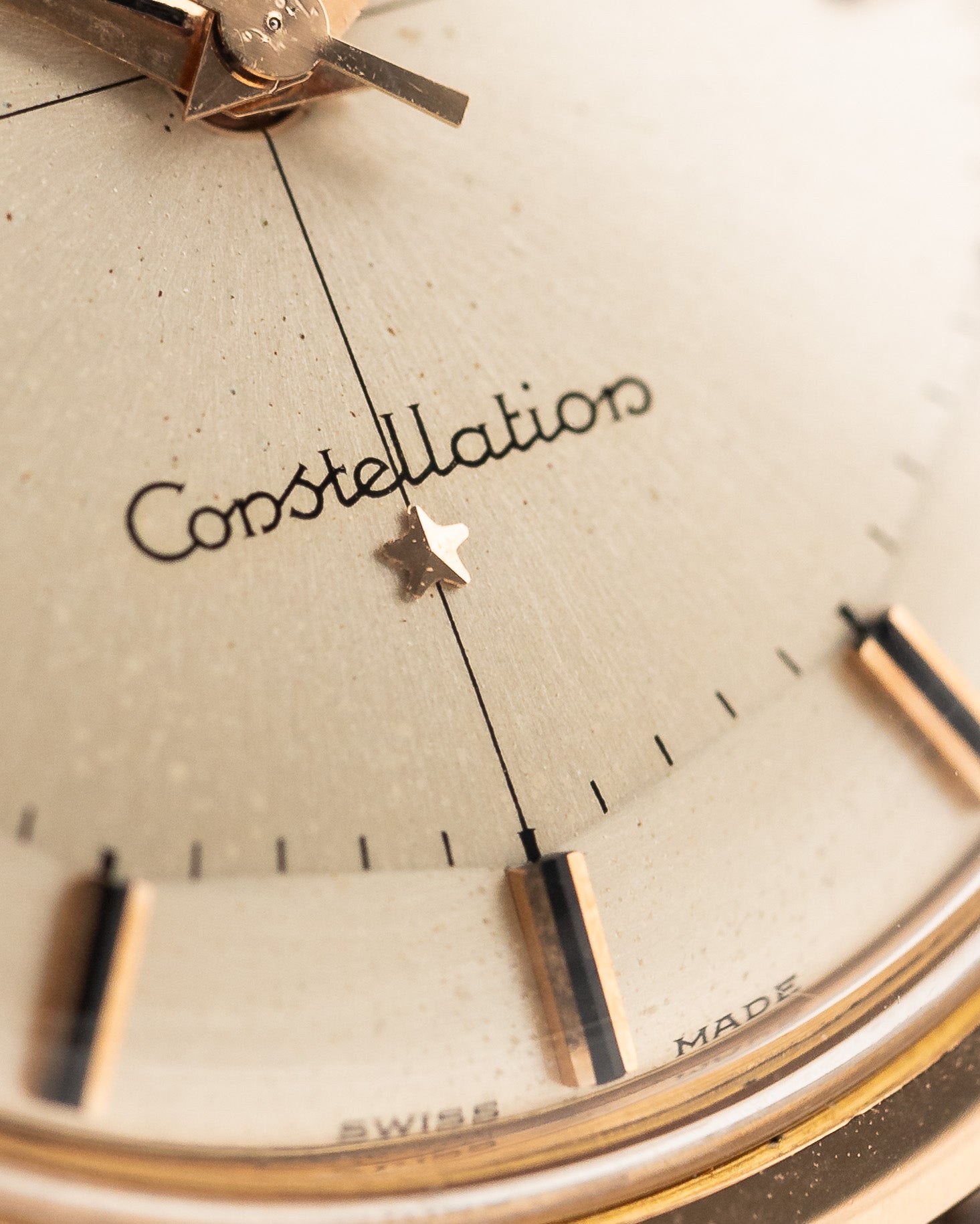 تحتوي ساعة أوميغا كونستيليشن الكرونومتر الأوتوماتيكية المدمجة والجميلة هذه على كل ما تريده في ساعة فستان: علبة من الذهب الوردي عيار 35 مم عيار 18 قيراطًا من الذهب الوردي، وثوانٍ مركزية، وميناء فضي جميل للغاية وميناء فضي جميل للغاية وعلامات ساعات رفيعة نادرة مع ترصيع من الأونيكس. أُصدرت ساعة كونستيليشن لأول مرة في عام 1952، وكانت ساعة أوميغا هي رد أوميغا على ساعة رولكس ديت جست.