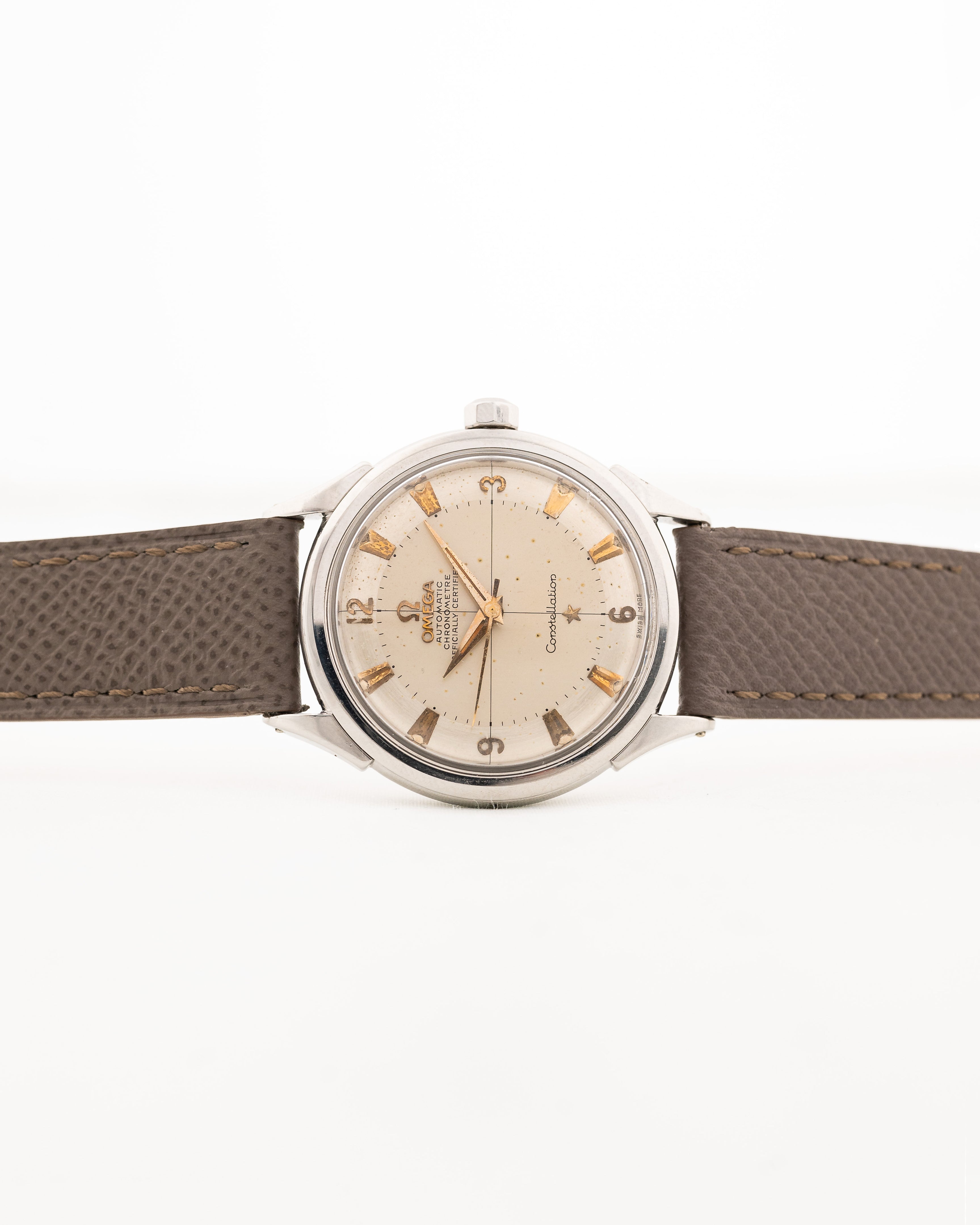 تحتوي ساعة أوميغا كونستيليشن الكرونومتر الأوتوماتيكية المدمجة والجميلة هذه على كل ما تريده في ساعة فستان: علبة مصنوعة من الفولاذ المقاوم للصدأ بقطر 35 مم، وثوانٍ مركزية، وميناء فضي جميل للغاية بلونين مع تقاطع، وعقارب دوفين ذهبية كلاسيكية وعلامات ساعات ذهبية. أُصدرت ساعة كونستيليشن لأول مرة في عام 1952، وكانت بمثابة رد أوميغا على ساعة رولكس ديت جست.