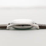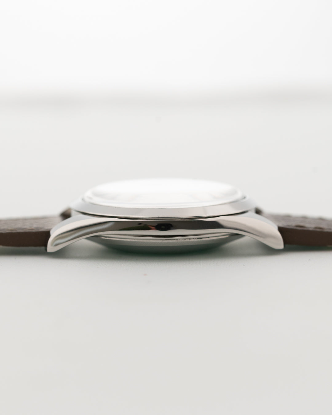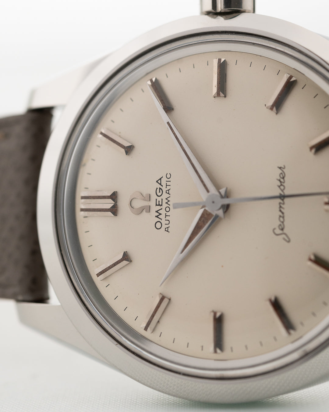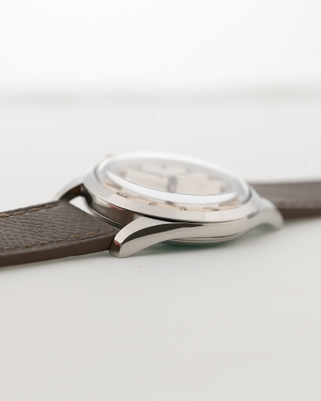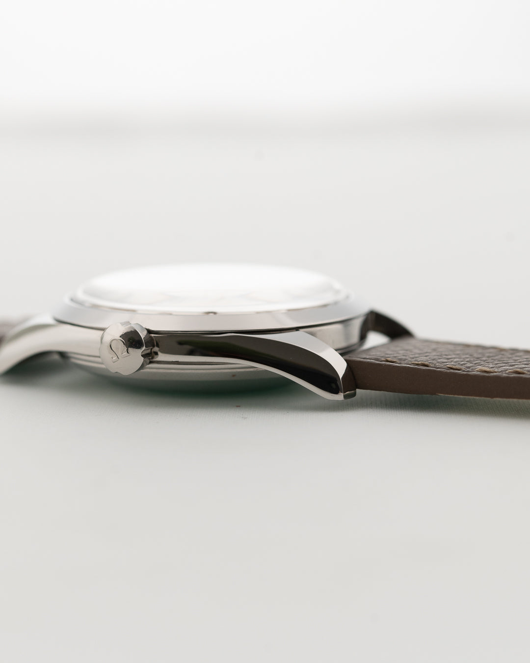 يمكنك أن ترى هنا ساعة سيماستر رائعة ونادرة صنعتها أوميغا في عام 1958. وتتميز بعلبة من الفولاذ المقاوم للصدأ مقاس 35 مم مع عروات مقلوبة جميلة للغاية، وعادةً ما تجدها فقط مع العلب الأكثر ضخامة. كما أنها تأتي بميناء نظيف جميل وعلامات ساعات ذات عصا.
