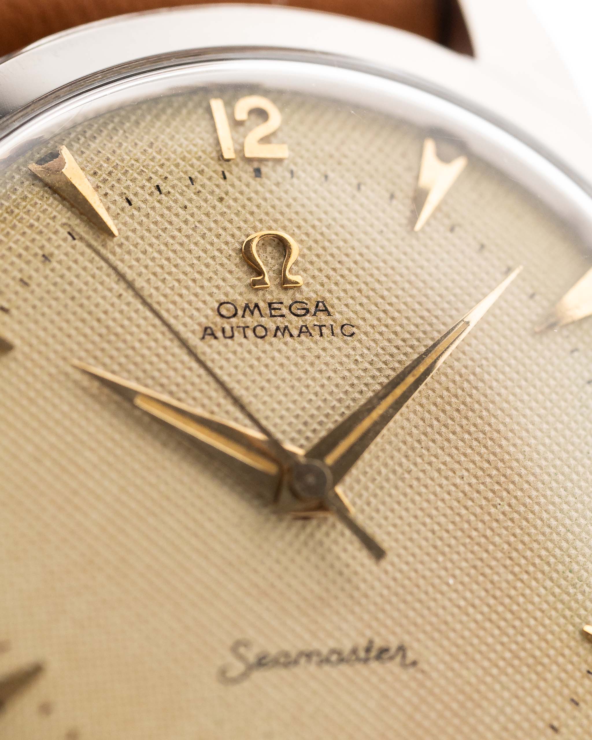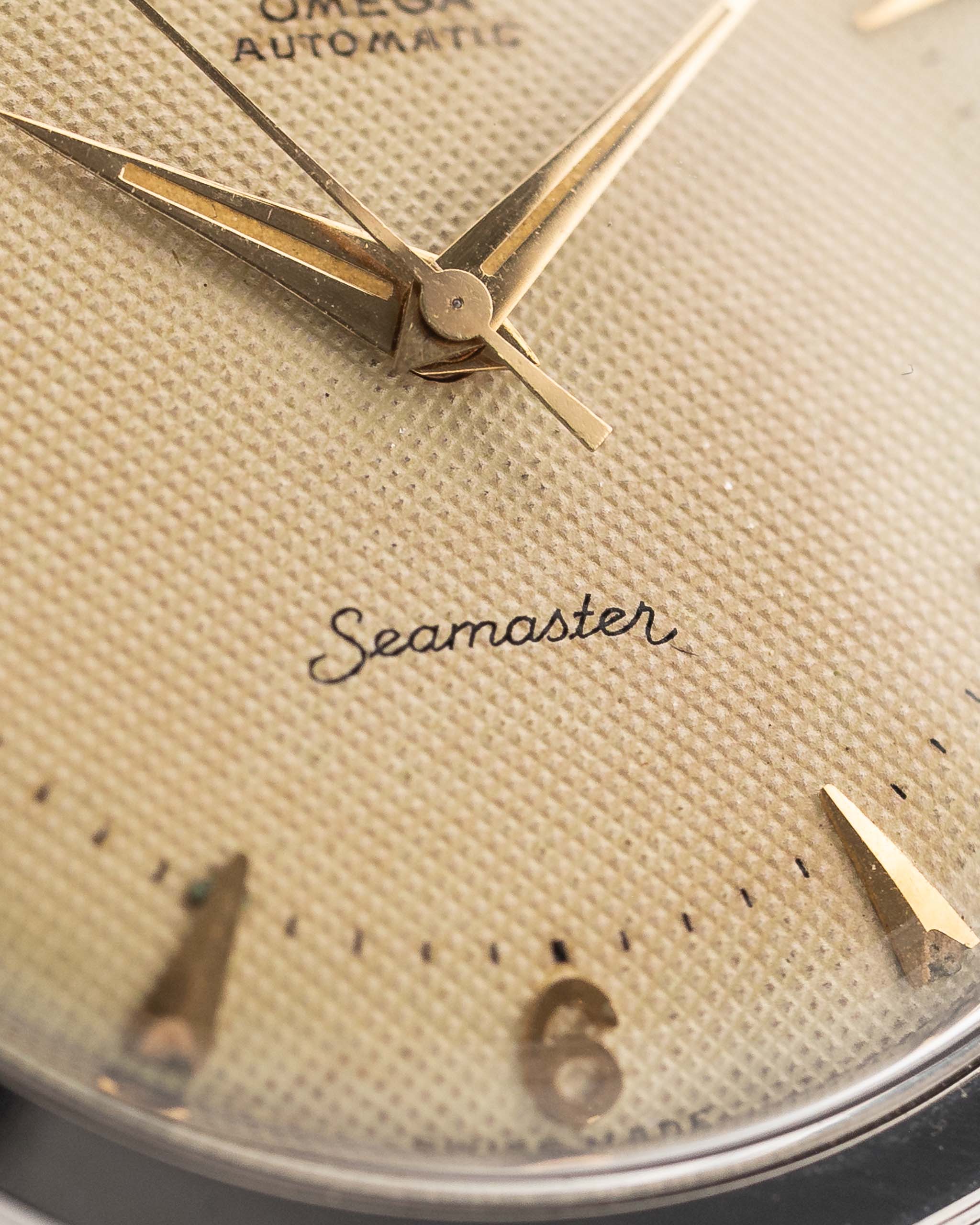 يمكنك هنا رؤية ساعة سيماستر الرائعة التي صنعتها أوميغا في عام 1952. وتتميز بعلبة جامبو من الفولاذ المقاوم للصدأ مقاس 36 مم مع عروات مائلة قليلاً إلى الأسفل، وتأتي بميناء جميل على شكل قرص العسل وعلامات ساعات خنجرية وعقارب دوفين.