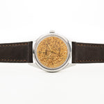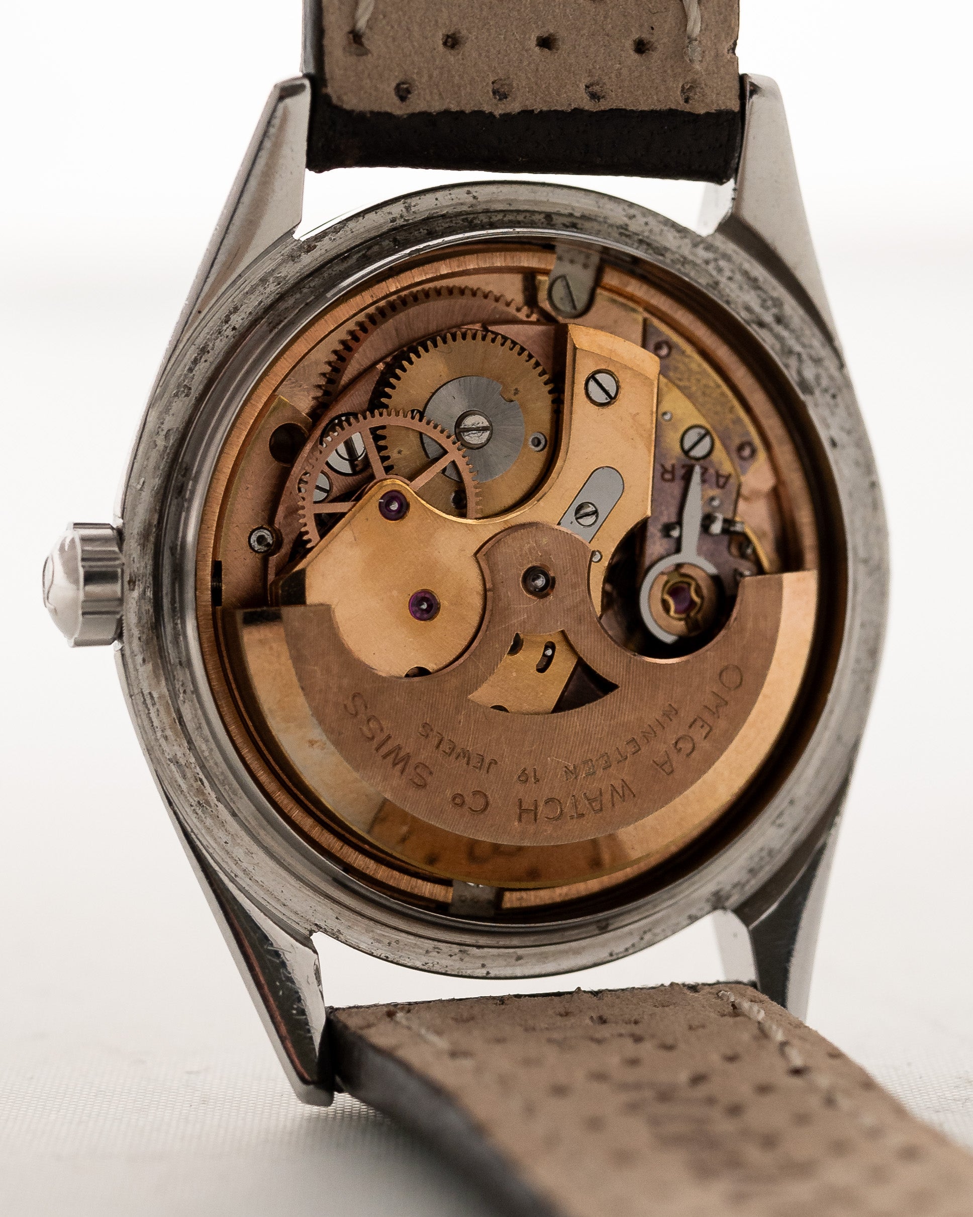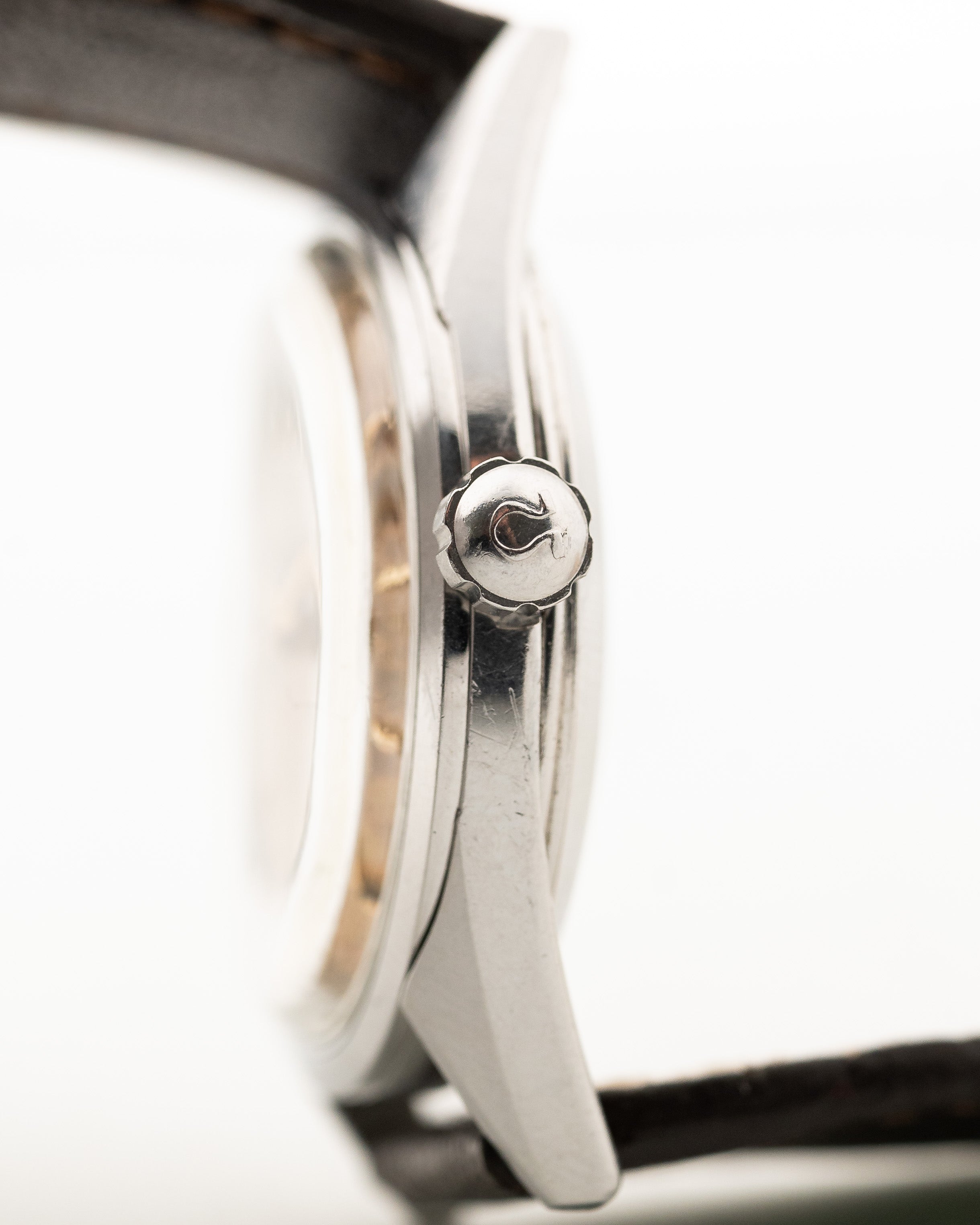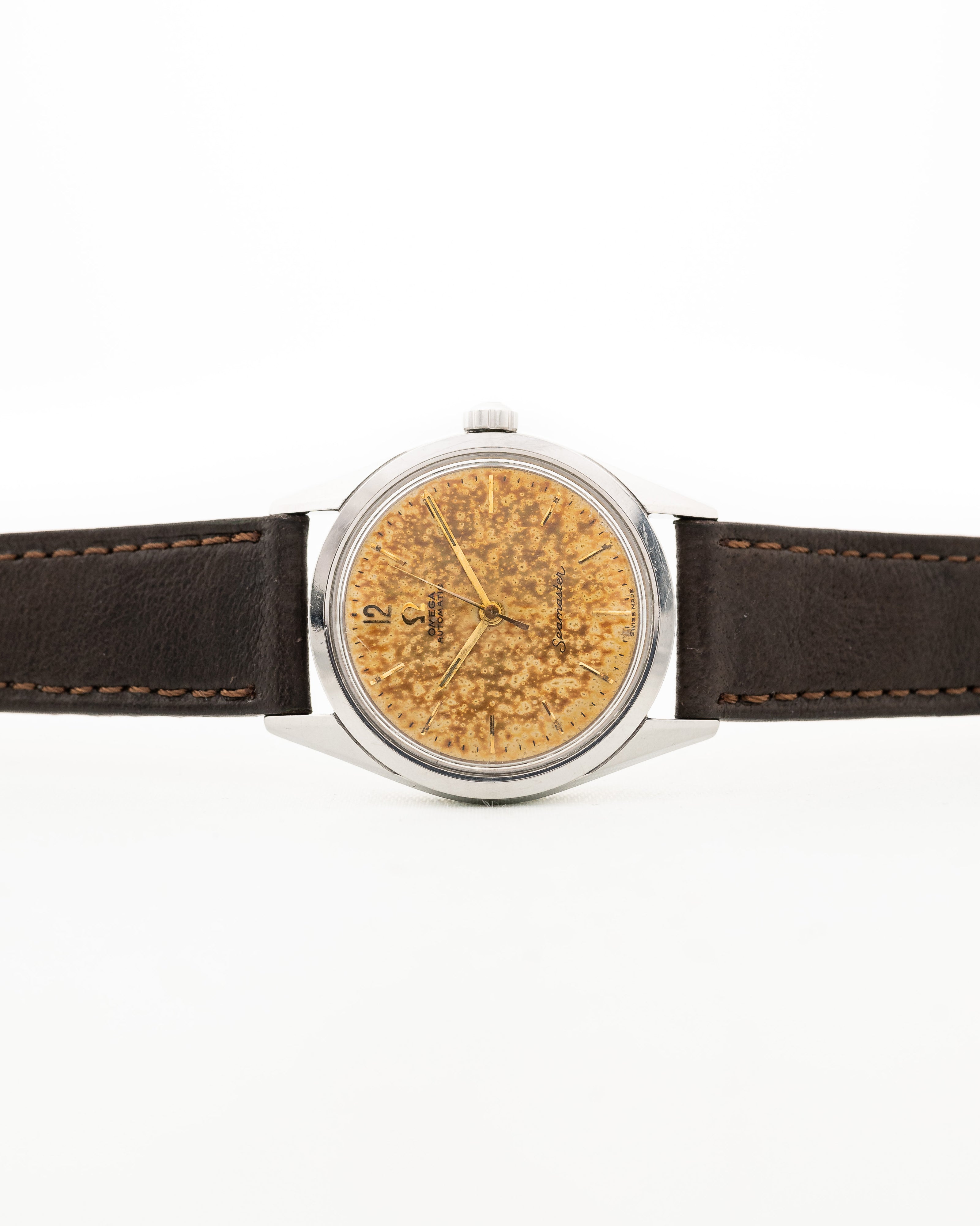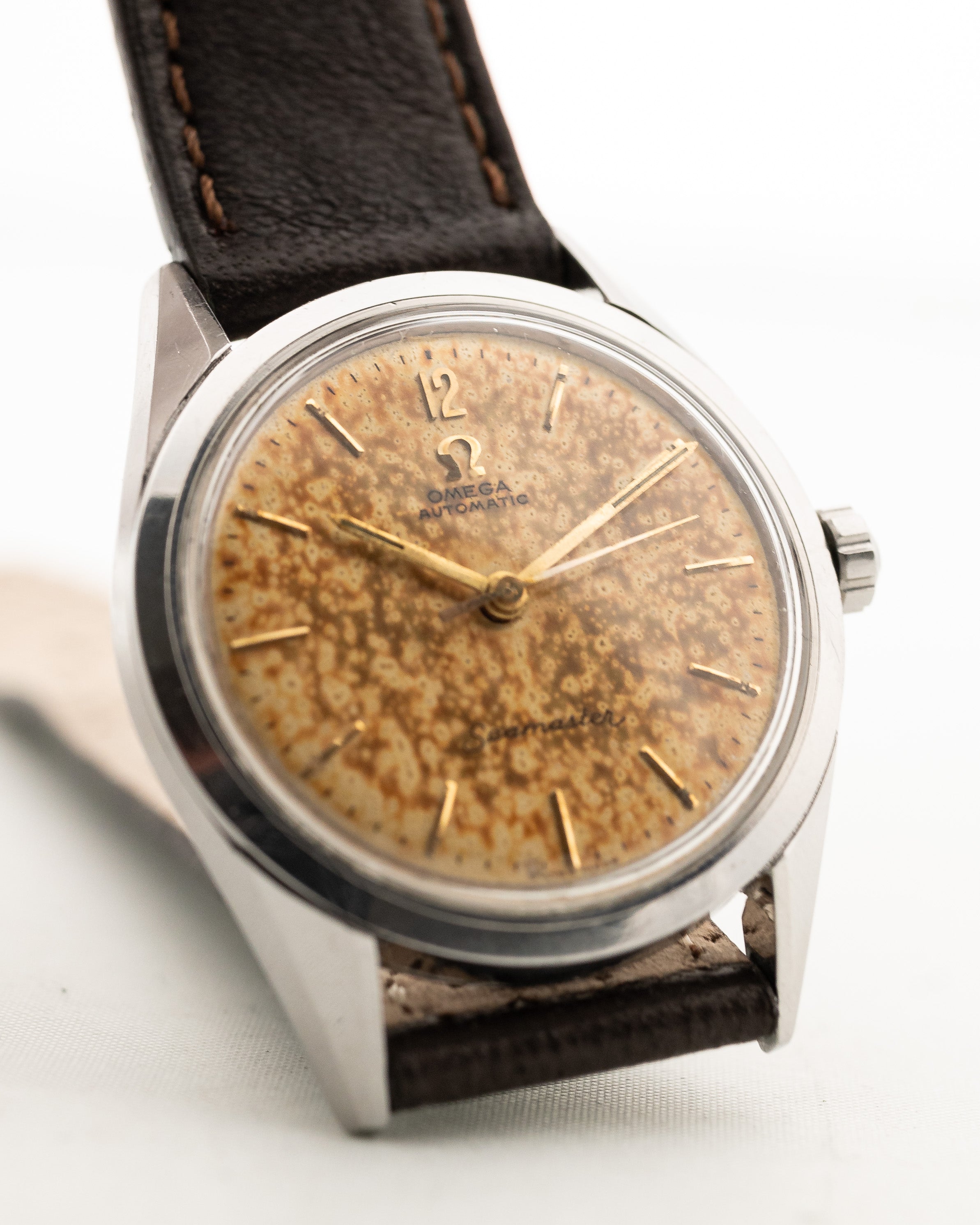 يمكنك هنا رؤية ساعة سيماستر الرائعة التي صنعتها أوميغا في عام 1954. وتتميز بعلبة من الفولاذ المقاوم للصدأ مقاس 33 مم بعروات مستقيمة وتأتي بعلامات ساعات وعقارب ذهبية.