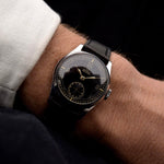 • يأتي مع حزام جلدي أسود ما بعد البيع يناسب مقاس المعصم حتى 20 سم/سمك 2.4 مم