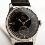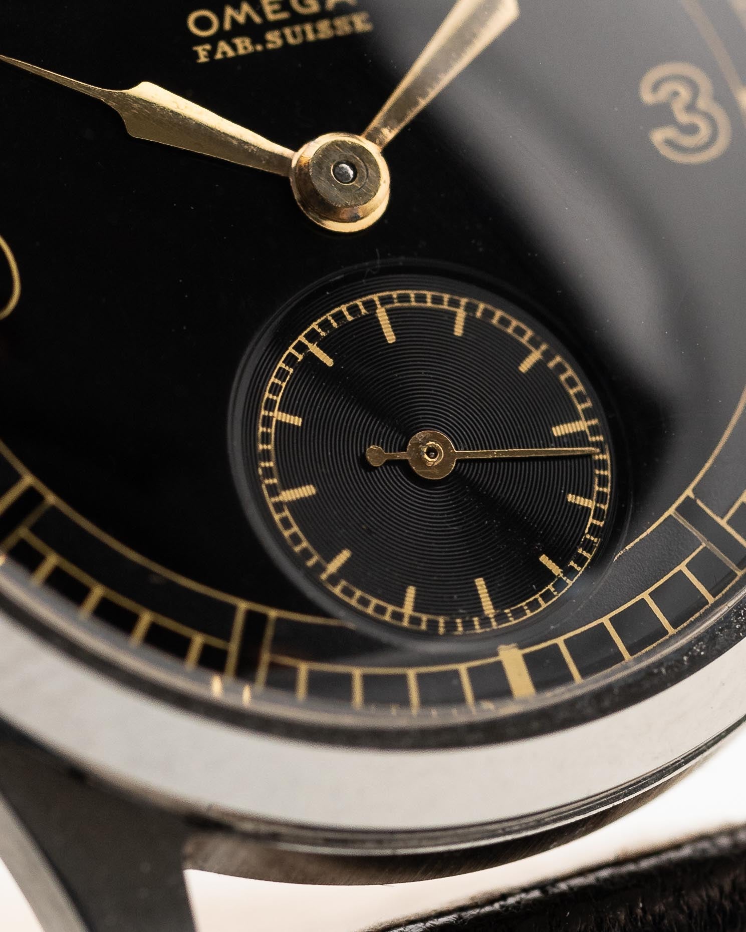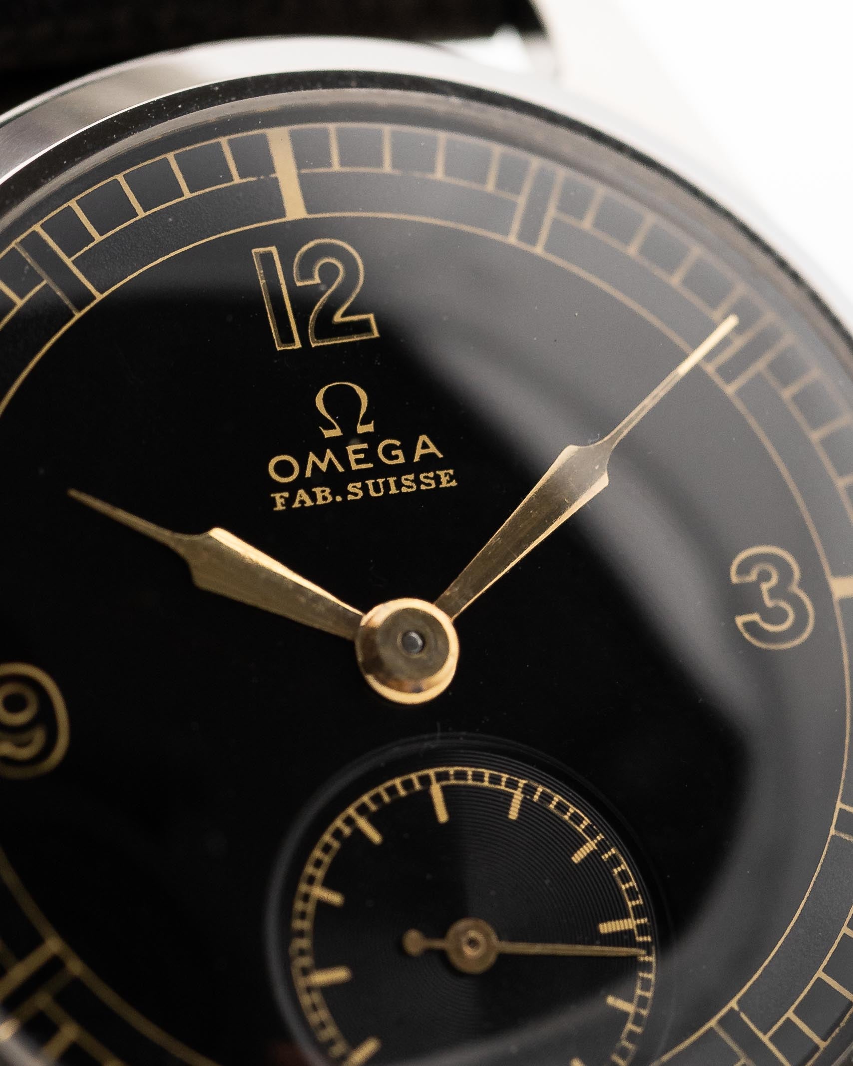 من الصعب العثور على ساعة أوميغا من ثلاثينيات القرن العشرين في حالة رائعة، ولكن العثور على واحدة بميناء أسود لامع جميل مع أرقام عربية ذهبية اللون وعقارب حقنة مطابقة أمر شبه مستحيل، وتتميز هذه الساعة الجميلة بعلبة من الفولاذ المقاوم للصدأ مع مينا أسود نادر، وهي مصممة على طراز آرت ديكو.