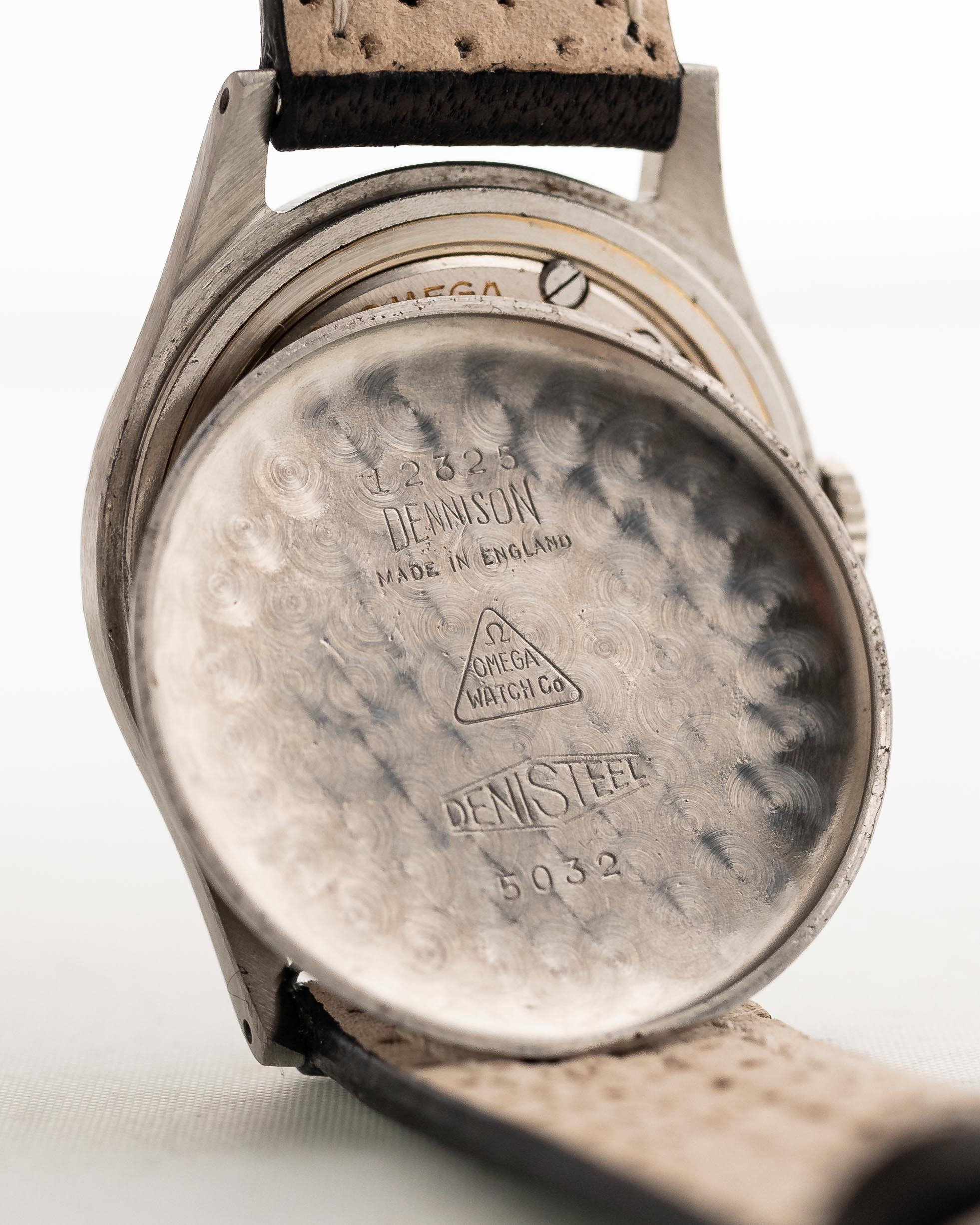 تُعد هذه القطعة تحديدًا أكثر ندرة لأن العلبة صُنعت بواسطة صانع العلب الإنجليزي دينيسون والساعة نفسها صُنعت في سويسرا بواسطة أوميغا بميناء "فاب. Suisse".