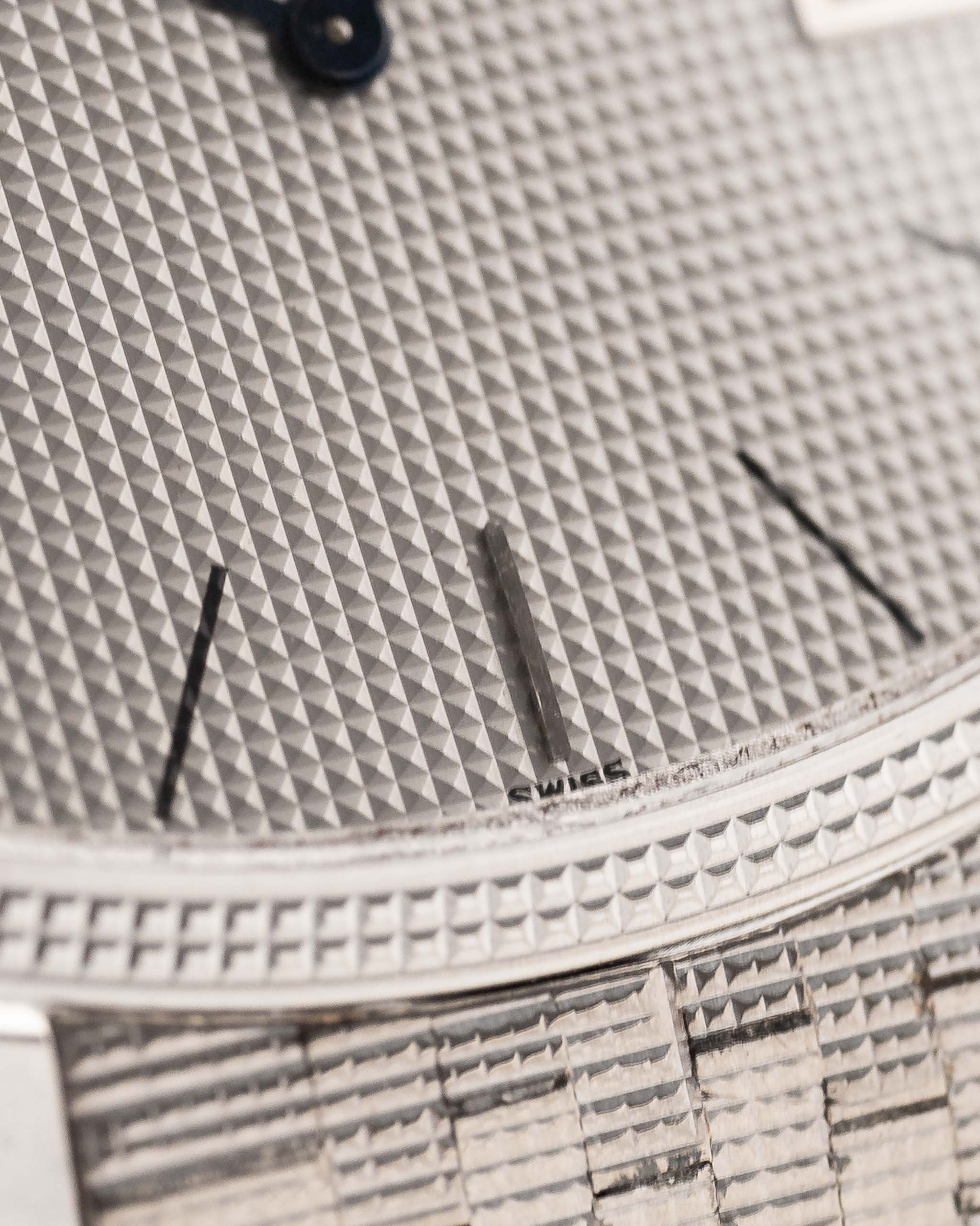 تأتي قطعتنا في حالة رائعة بسوار مذهل من الذهب الأبيض عيار 18 قيراط، وميناء من الذهب الأبيض مع علامات ساعات عصا وعقارب عصا زرقاء في حالة لا تشوبها شائبة. المظهر العام مع شكل علبة التلفزيون المربع هو قطعة فنية.