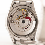 تتميز هذه القطعة التي يعود تاريخها إلى عام 1997 بحالتها التي لا تشوبها شائبة ومينا أزرق غامق لا تشوبه شائبة وعلبة قوية ذات حواف حادة في حالة ممتازة وإطار مسطح جميل مدور بمحرك.