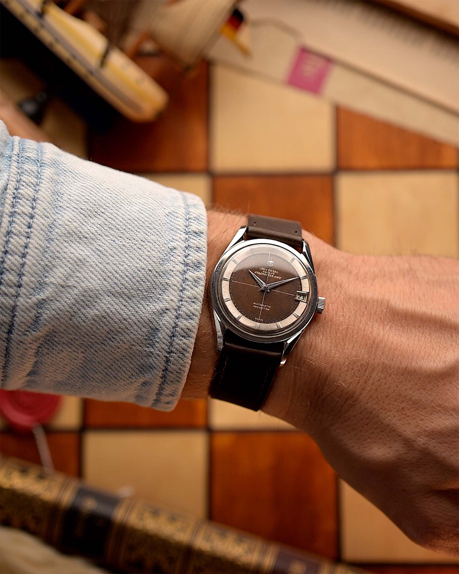 The case has been carefully polished to original Universal Genève factory specs, preserving its sharp, sculptural lines. Altogether, this is more than just a watch — it’s a design milestone from one of horology’s greatest minds, and a standout collector’s piece.