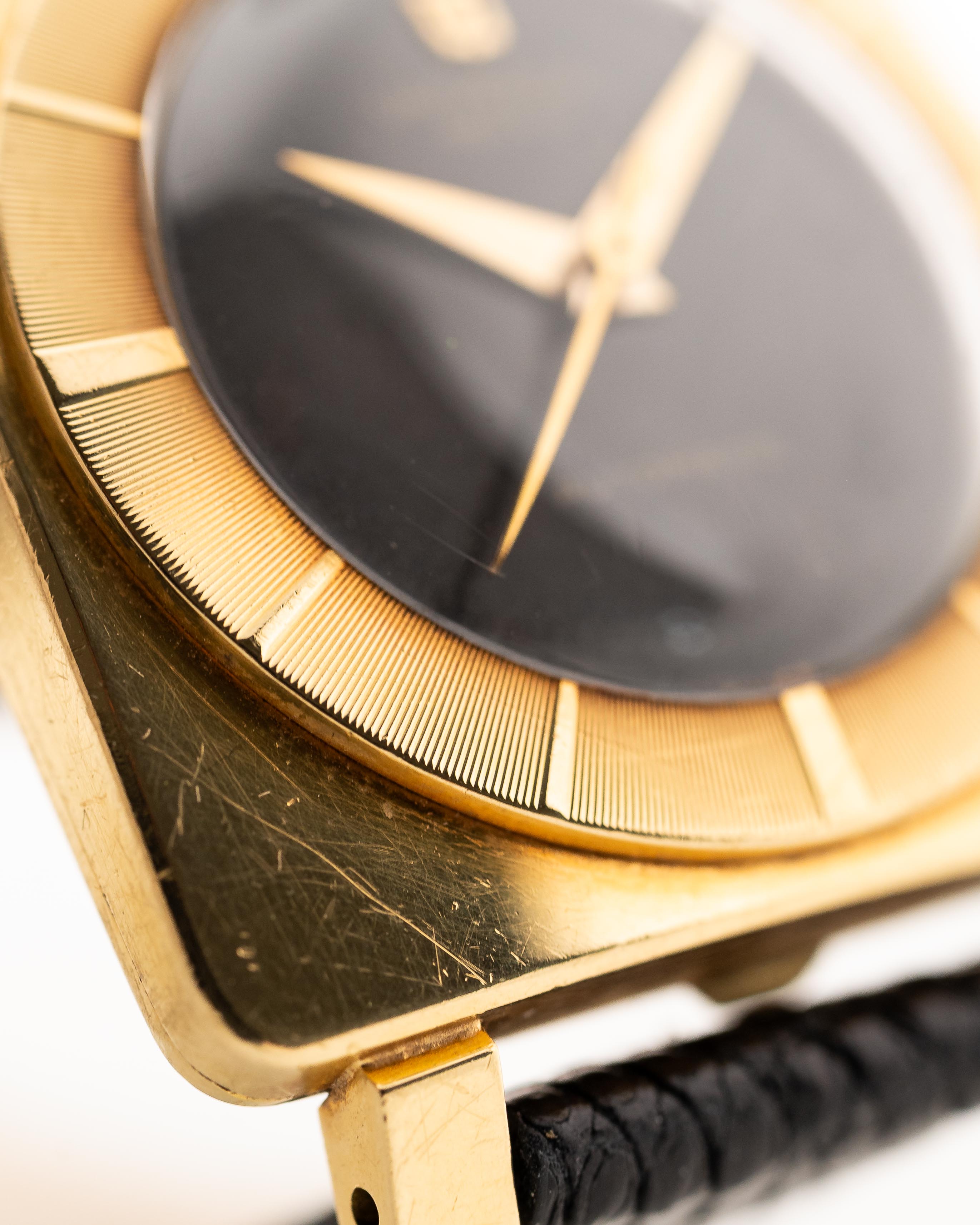 تُعدّ ساعة يونيفرسال جينيف سكوير من الذهب الأصفر عيار 18 قيراطًا ساعة مميزة حقًا ولن تراها كثيرًا على معاصم أخرى. أُنتجت على مدى 7 سنوات فقط في منتصف الخمسينيات من القرن الماضي. وتحتوي على بعض عناصر ساعة بوليروتر مثل الإطار، الذي لا ينتصر على الميناء كالمعتاد بل على العلبة المربعة المصنوعة من الذهب الأصفر عيار 18 قيراطًا. تنضح هذه التفاصيل التصميمية بنوع مختلف من السحر وتخلق حضوراً مدهشاً على المعصم.