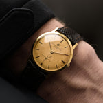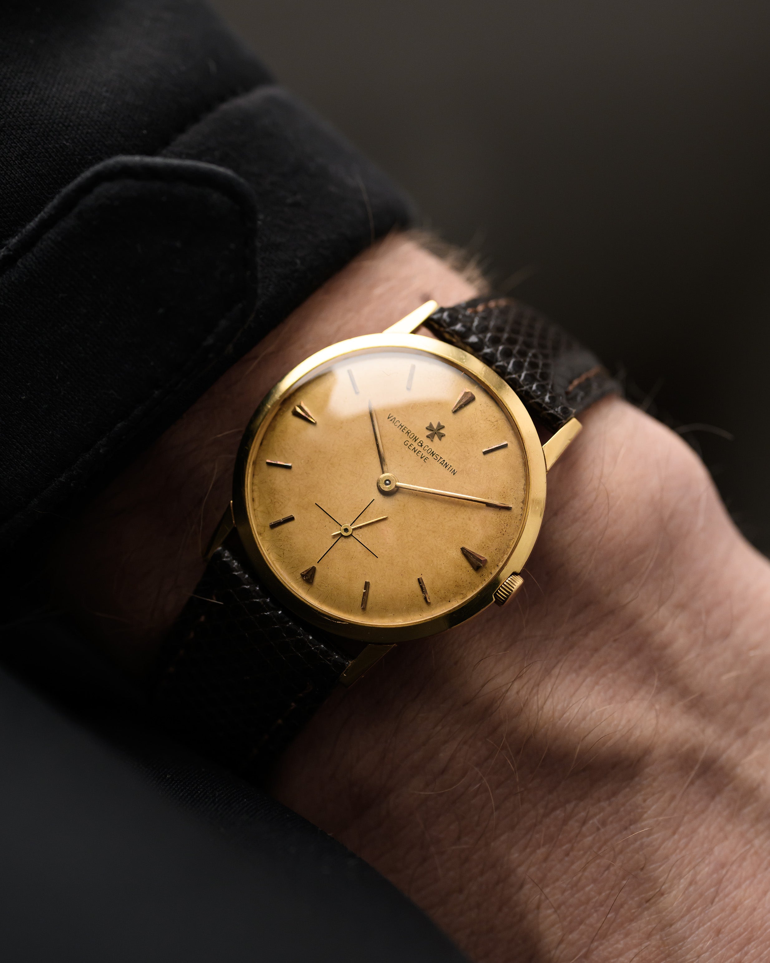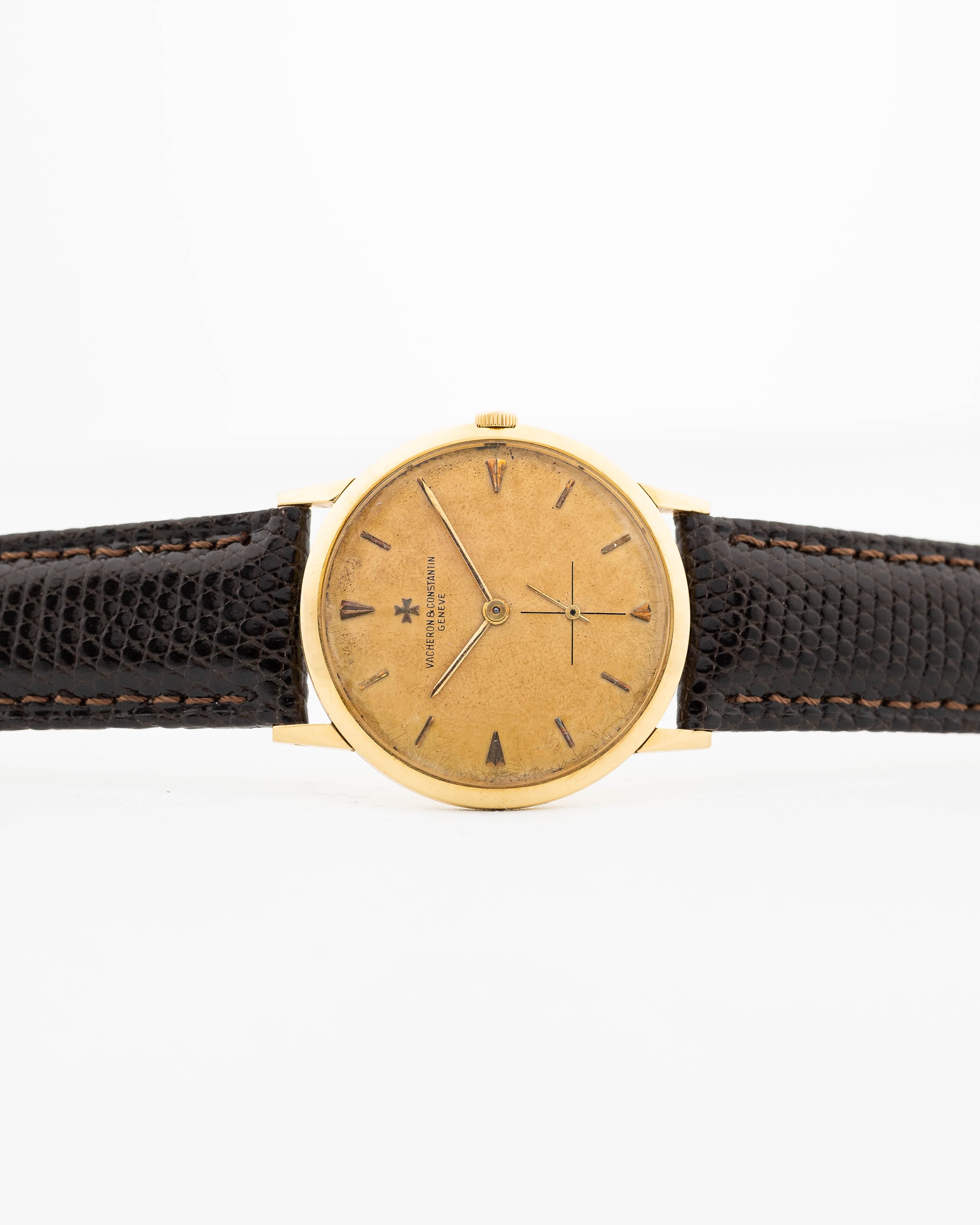 لدينا هنا ساعة فساتين ڤاشرون كونستانتين ذات تشطيبات جميلة تعود إلى خمسينيات القرن الماضي بعلبة رقيقة للغاية وميناء كالاترافا مصمّم بشكل مذهل اكتسب لونًا دافئًا وفريدًا من نوعه.