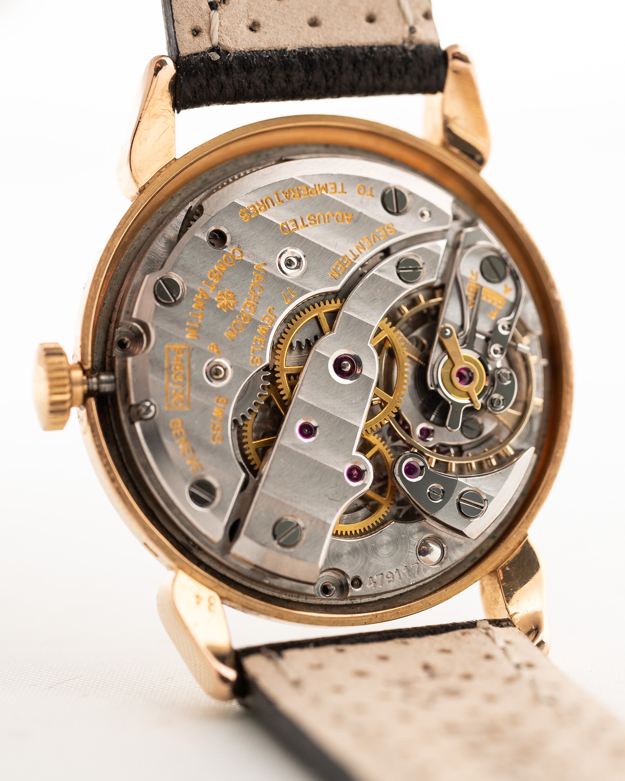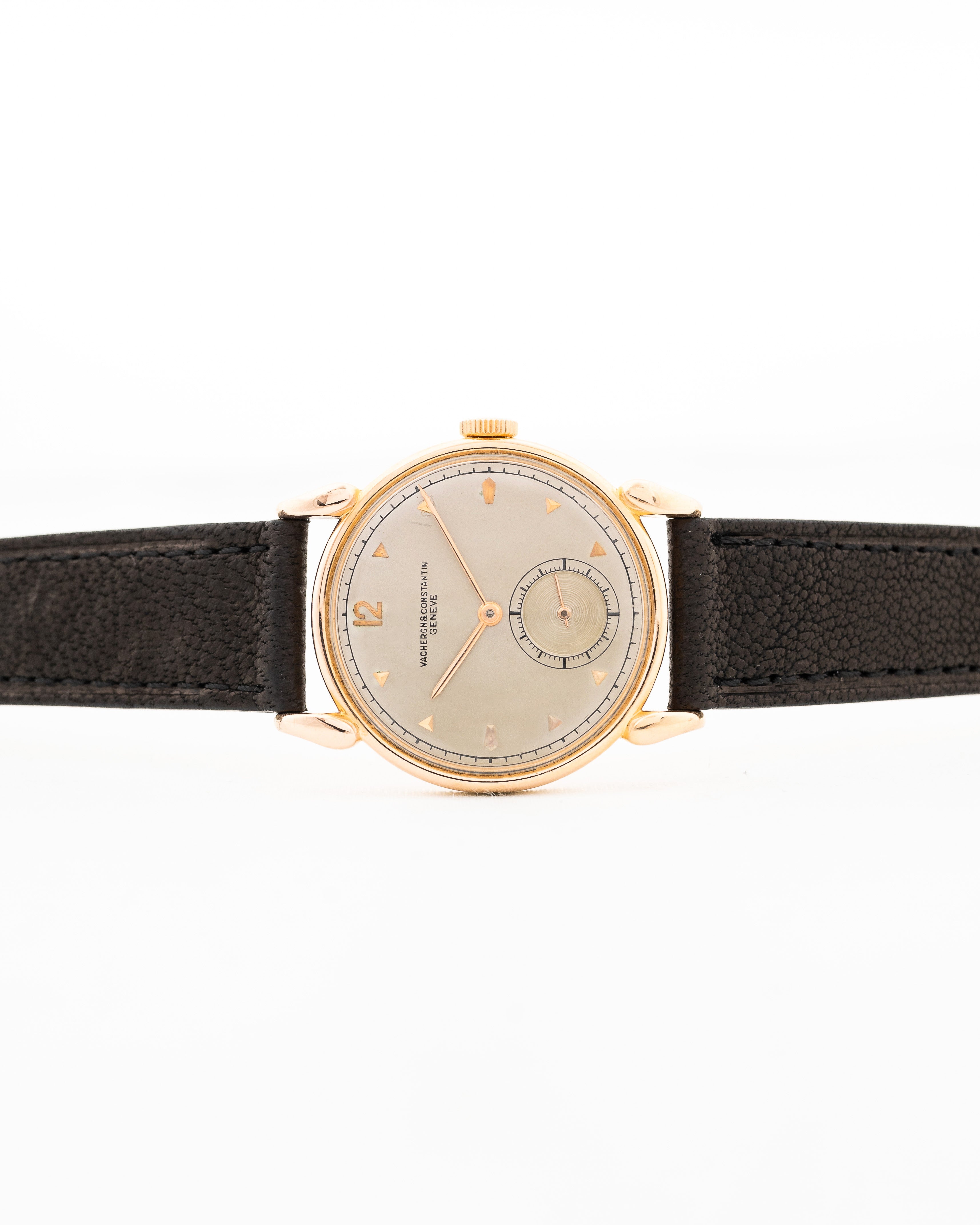 لدينا هنا مثال جميل لساعة ڤاشرون كونستانتين من الذهب الوردي عيار ٣٣ مم عيار ١٨ قيراطًا من عيار ١٨ قيراطًا من عيار ١٨ قيراطًا من عيار ١٨ قيراطًا من جيرلاخ في أربعينيات القرن العشرين.