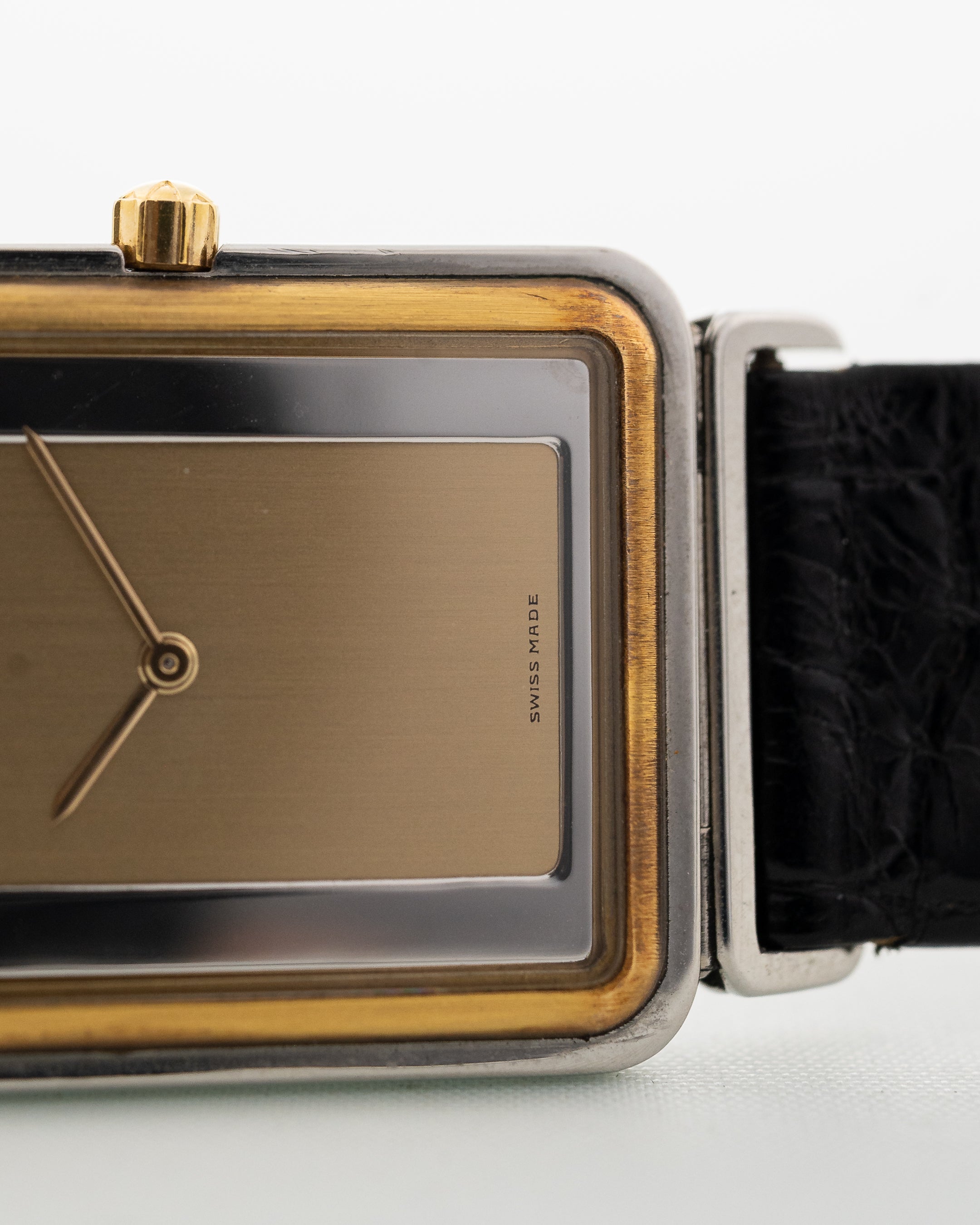 تُعد ڤاشرون كونستانتين أقدم صانع ساعات يعمل باستمرار، حيث يعود تاريخ إنتاجها إلى عام 1755. وتتميز هذه الساعة الرقيقة ذات اللونين والعلبة المستطيلة الكبيرة الحجم، وهي أنيقة للغاية وبسيطة لدرجة أننا نقع في حبها على الفور.
