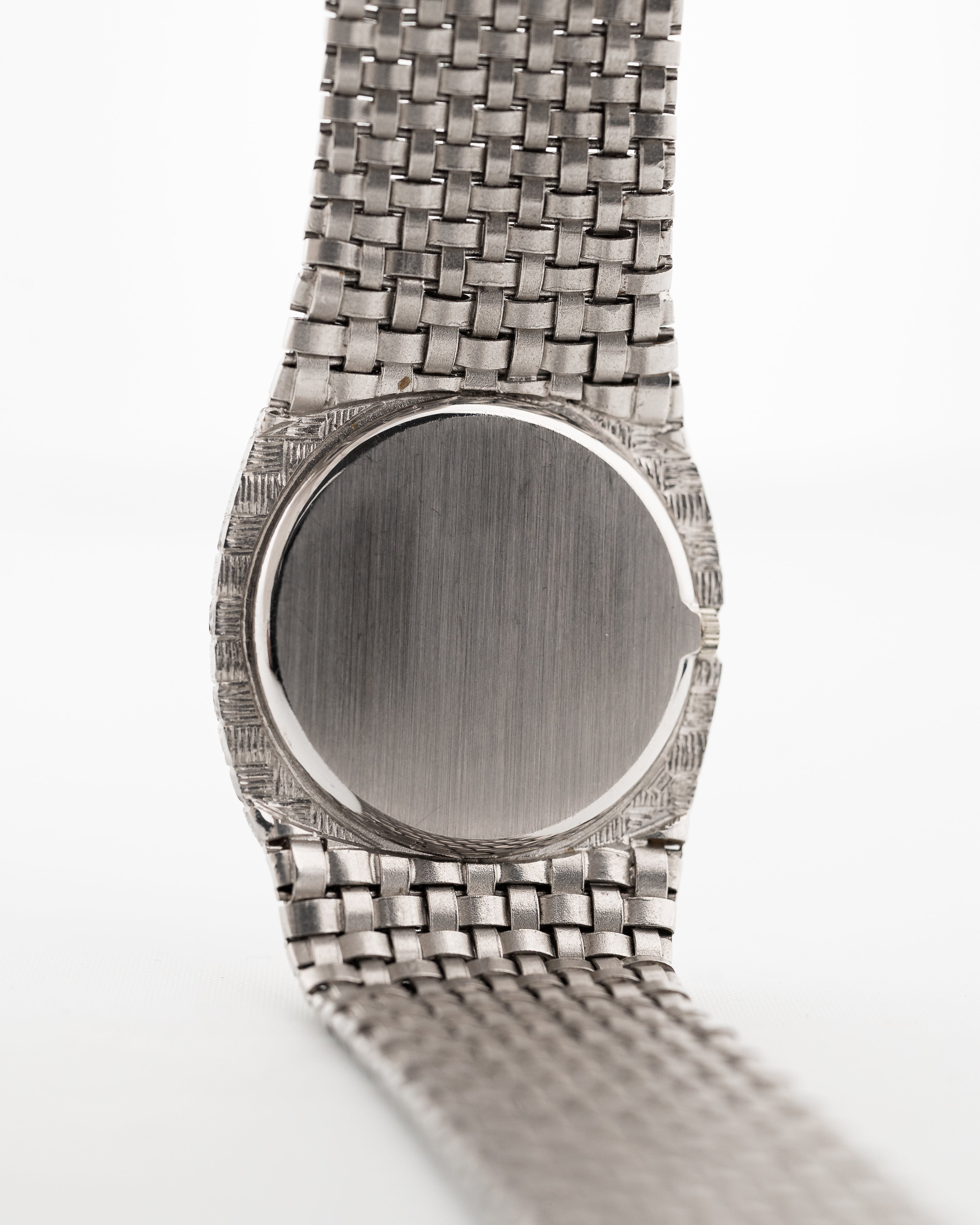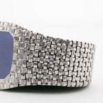 وتتميّز علبة الساعة المصنوعة من الذهب الأبيض عيار 18 قيراطًا بقطر ٣١,٥ مم بحالة رائعة ومُحسّنة بسوار وعلبة مصقولة بنسيج السلة. وما يزيد من روعة الساعة هو الميناء النادر باللون الأزرق الداكن اللازورد الذي لم نشاهده من قبل في هذا المرجع.