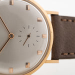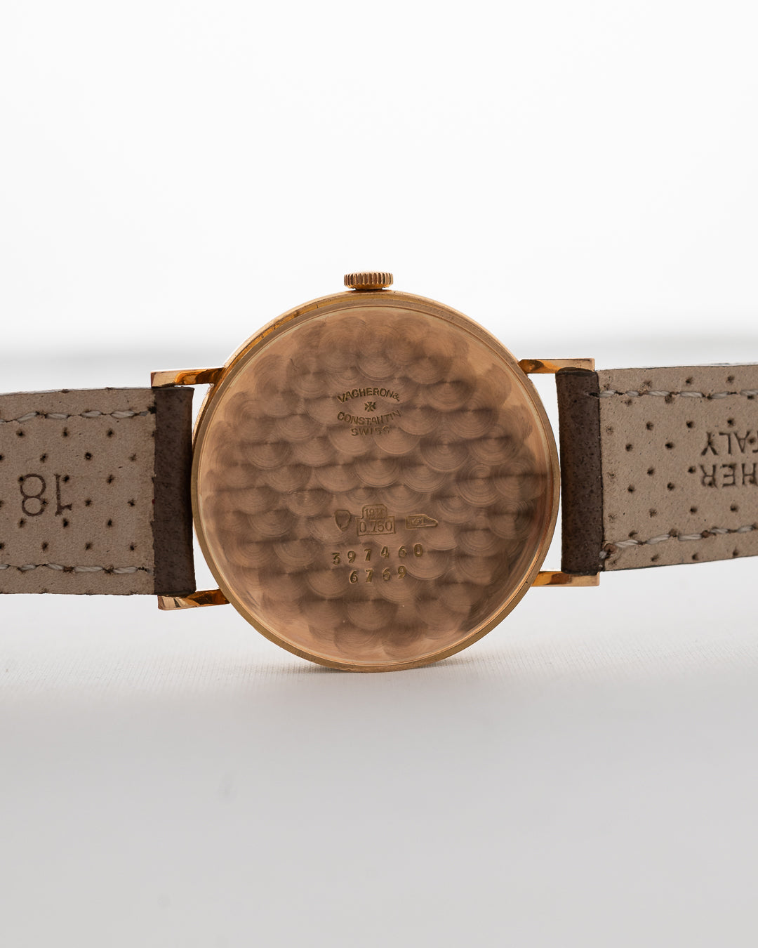 لدينا هنا ساعة فساتين ڤاشرون كونستانتين من الذهب الوردي ذات تشطيبات رائعة من الذهب الوردي تعود إلى عام ١٩٦٠، وتتميّز بمؤشرات مستطيلة فريدة من نوعها وميناء أبيض نظيف بشكل مذهل مع ثانية فرعية.