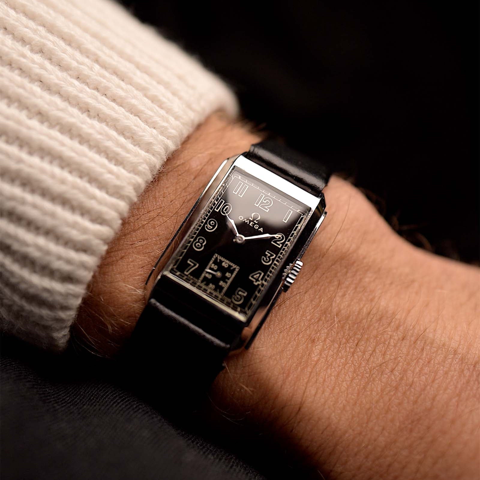 أوميغا أوميغا أوميغا مستطيلة الشكل أسود مذهب 1939