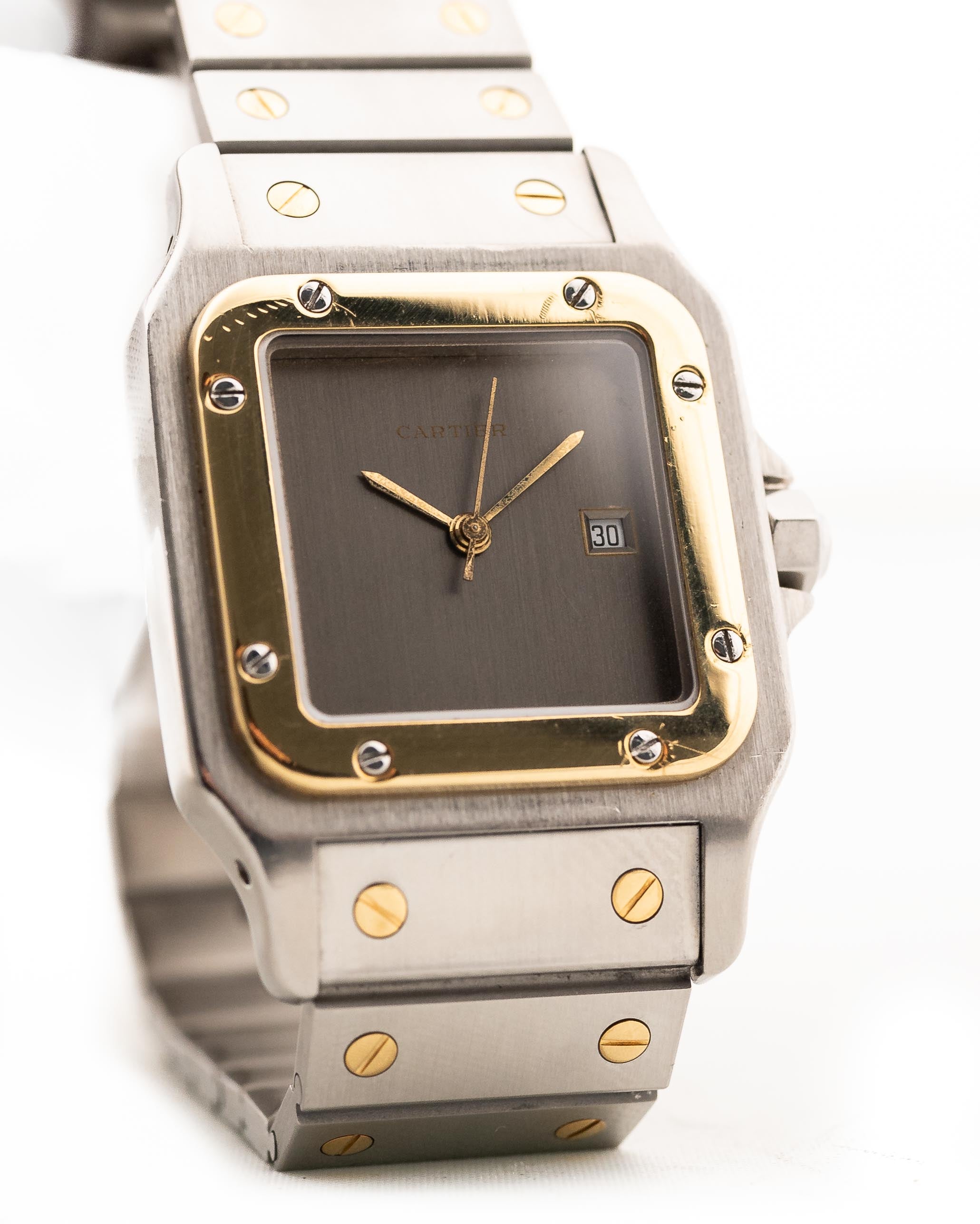 تبرز ساعة كارتييه سانتوس كاريه المصنوعة من الفولاذ المقاوم للصدأ بلونين من الفولاذ المقاوم للصدأ بشكل مذهل بميناها الرمادي المصقول أو ما يسمى "الشبح" وعقارب السيف الذهبية اللامعة، وبالطبع سوار كارتييه سانتوس الأيقوني المصنوع من الفولاذ المقاوم للصدأ مع البراغي الذهبية. وهذا الإصدار أقل شيوعًا بشكل كبير مما يجعلها مرغوبة أكثر.