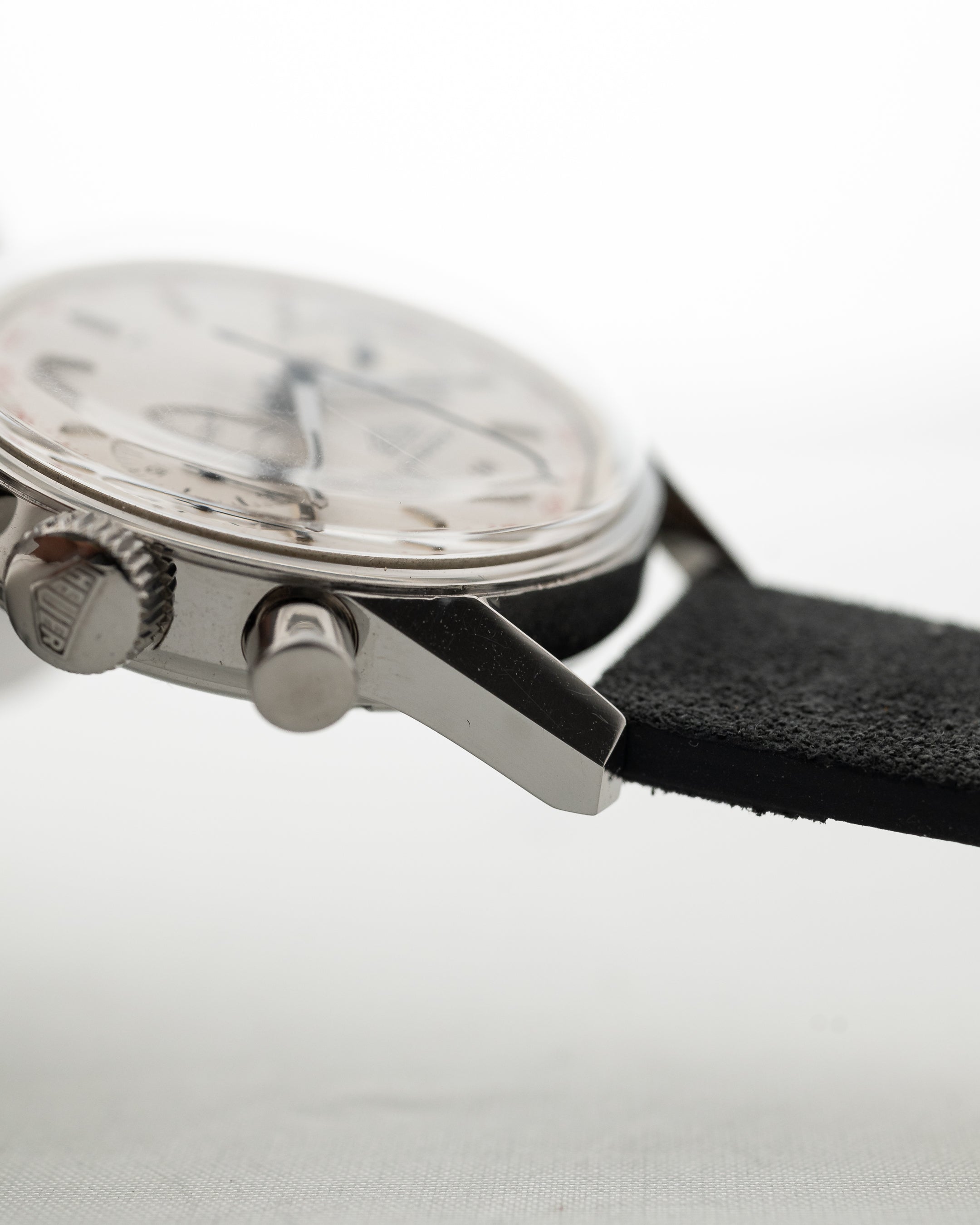 وعلى عكس العديد من الساعات الشهيرة، حققت ساعة كاريرا نجاحًا فوريًا بفضل تصميمها البسيط والأنيق الذي يجسد روح رياضة السيارات في الستينيات. تُعد الساعة المرجعية 3647T مثالاً رائعًا على ما يميز ساعة كاريرا - مينا فضي ذو قاعتين في حالة لا تشوبها شائبة تُظهر اهتمامًا كبيرًا بالتفاصيل. وبالطبع، هناك أيضًا علبة كاريرا الشهيرة التي تتميز بعروات بزاوية قوية وعلبة جميلة من الفولاذ المقاوم للصدأ ومقياس أحمر لمقياس سرعة الدوران.