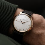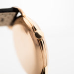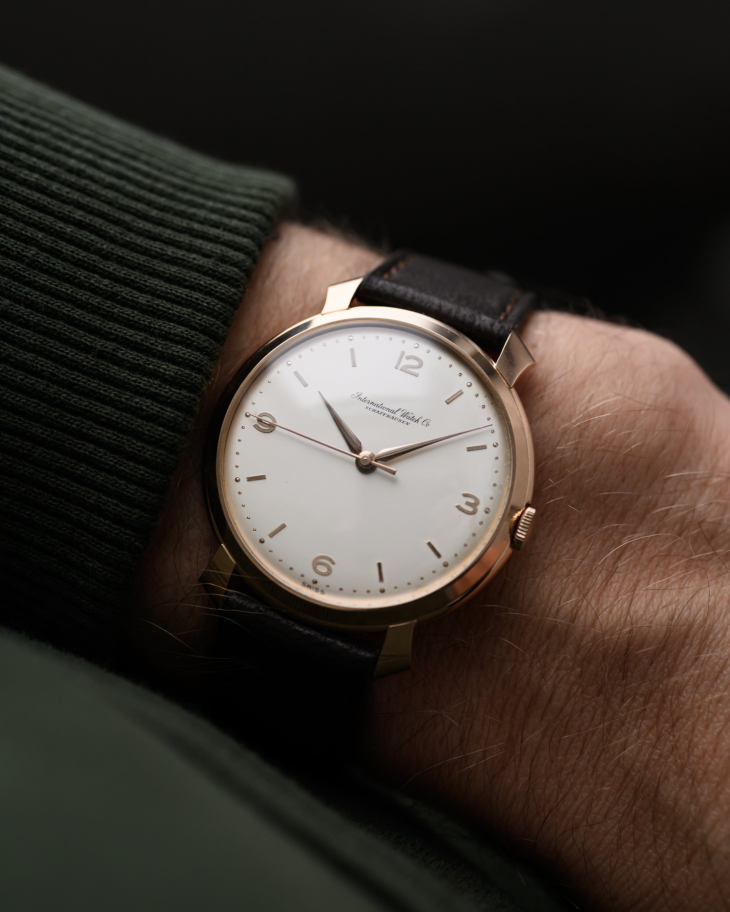 أنتجت IWC مجموعة واسعة جدًا من ساعات اليد منذ وقت مبكر، بدءًا من ساعات الملابس إلى ساعات الطيران. سيظل هذا النموذج، المصنوع من الذهب الوردي عيار 18 قيراطًا مع عروات زعنفة القرش، من الساعات الثابتة في مجموعات أي شخص، خاصةً أنها تأتي بهذه الحالة الرائعة.