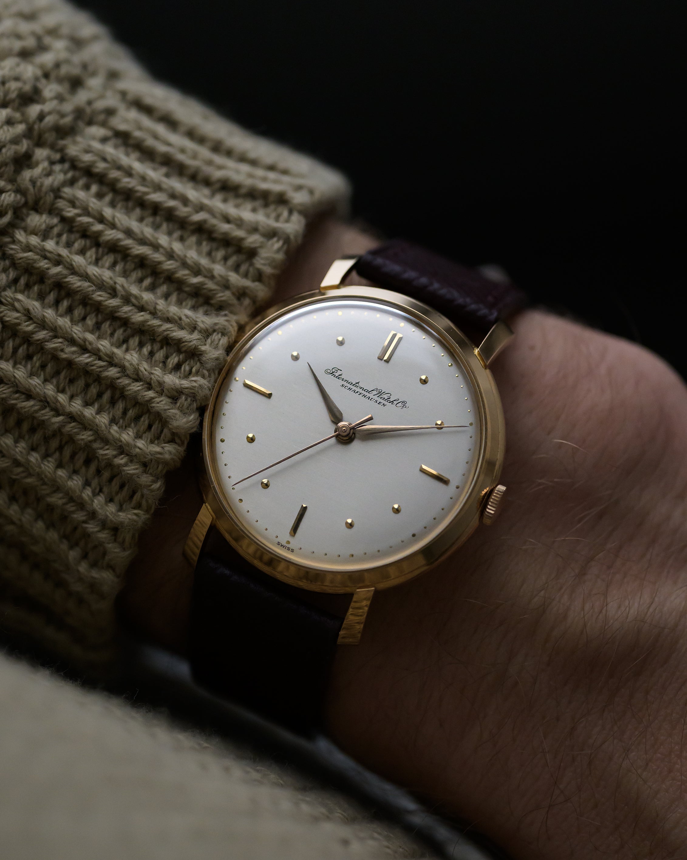 أنتجت IWC مجموعة واسعة جدًا من ساعات اليد منذ وقت مبكر، بدءًا من ساعات الملابس إلى ساعات الطيران. سيظل هذا النموذج، المصنوع من الذهب الوردي عيار 18 قيراطًا مع عروات زعنفة القرش، من الساعات الثابتة في مجموعات أي شخص، خاصةً أنها تأتي بهذه الحالة الرائعة.