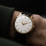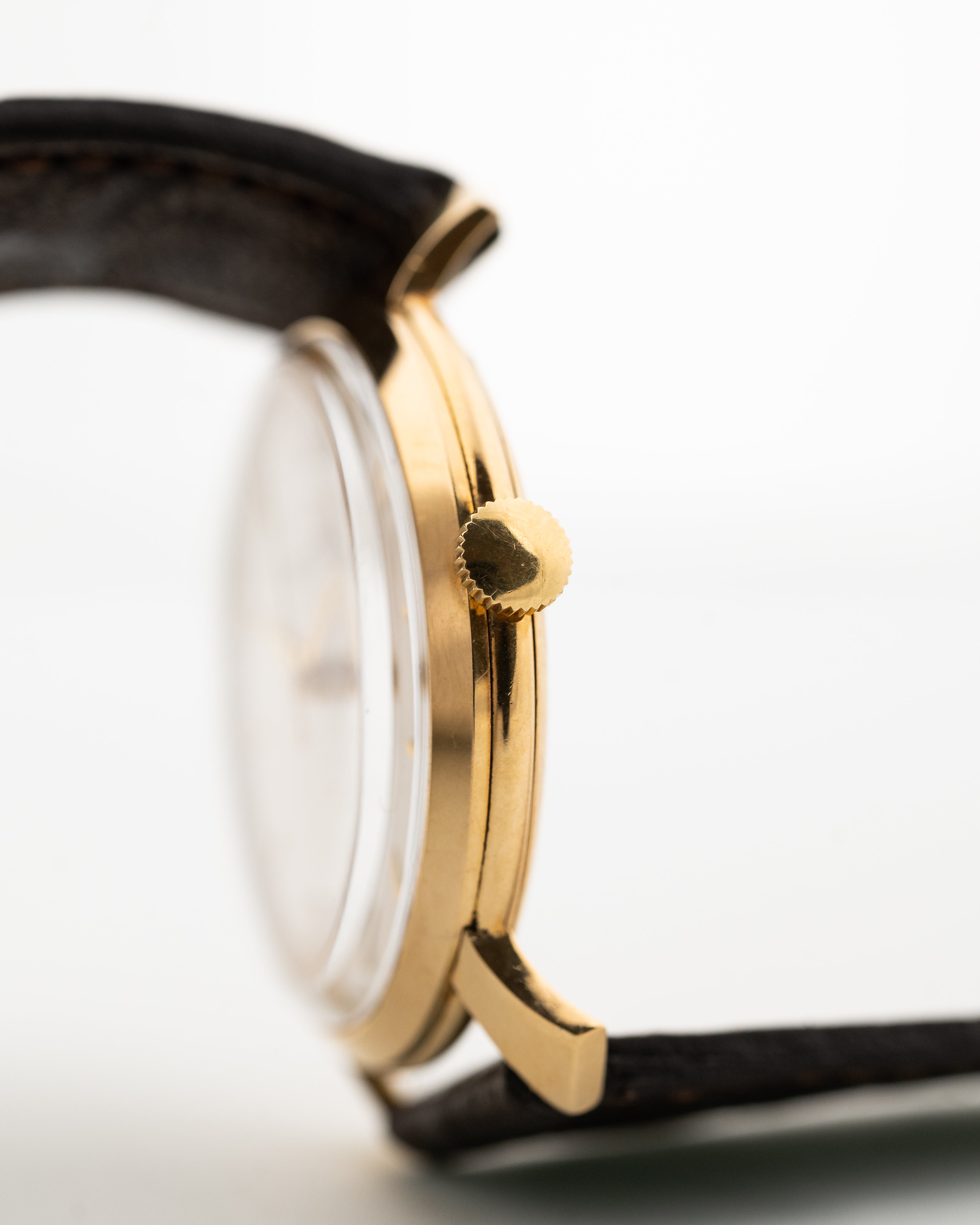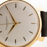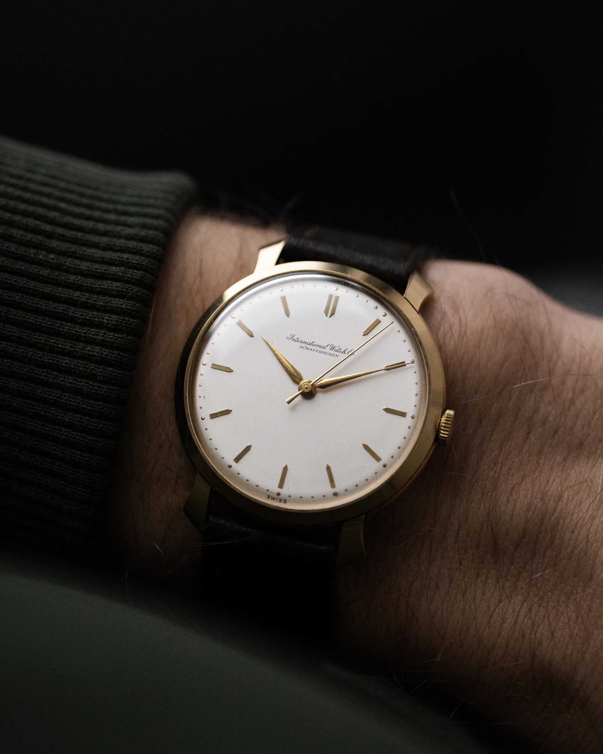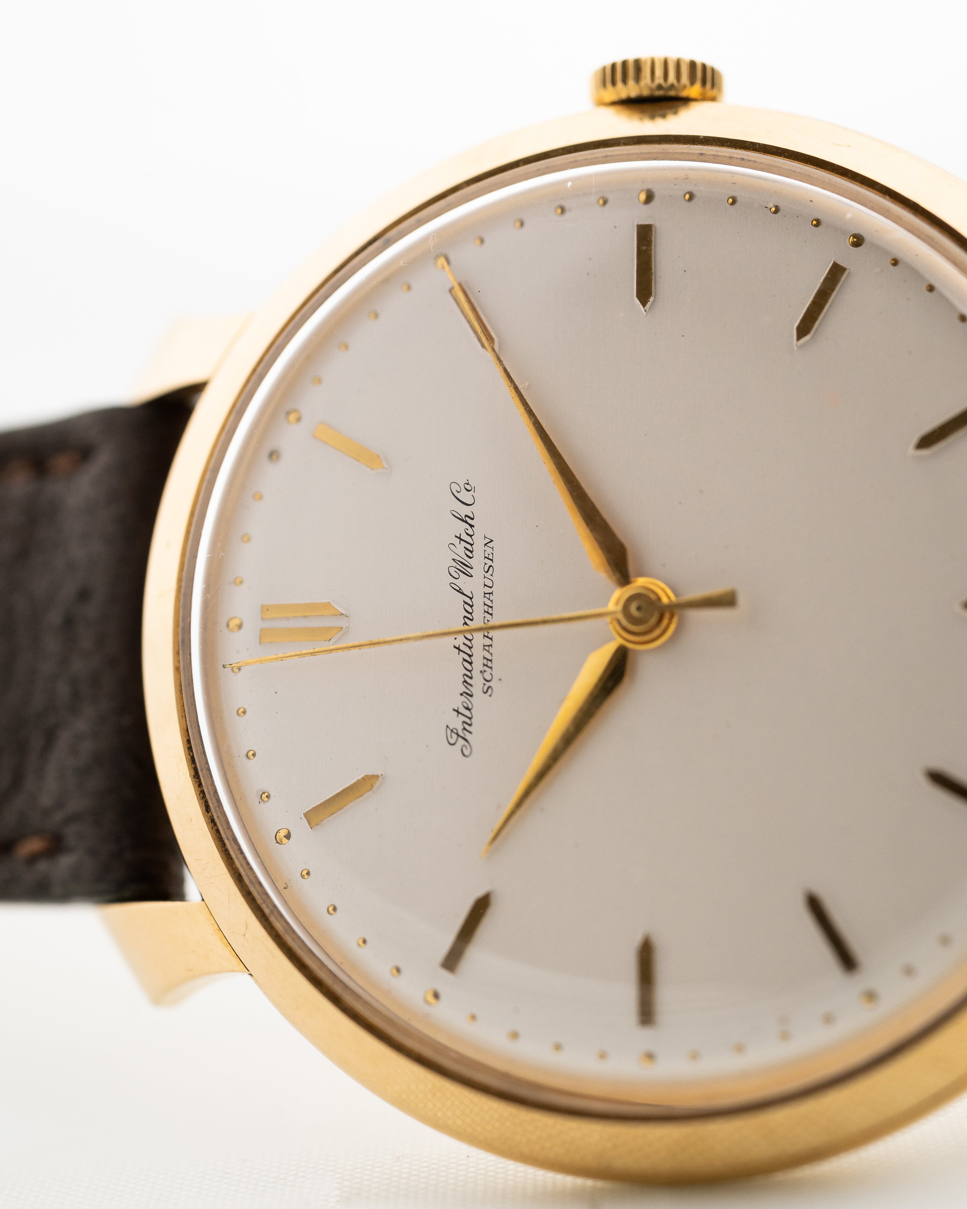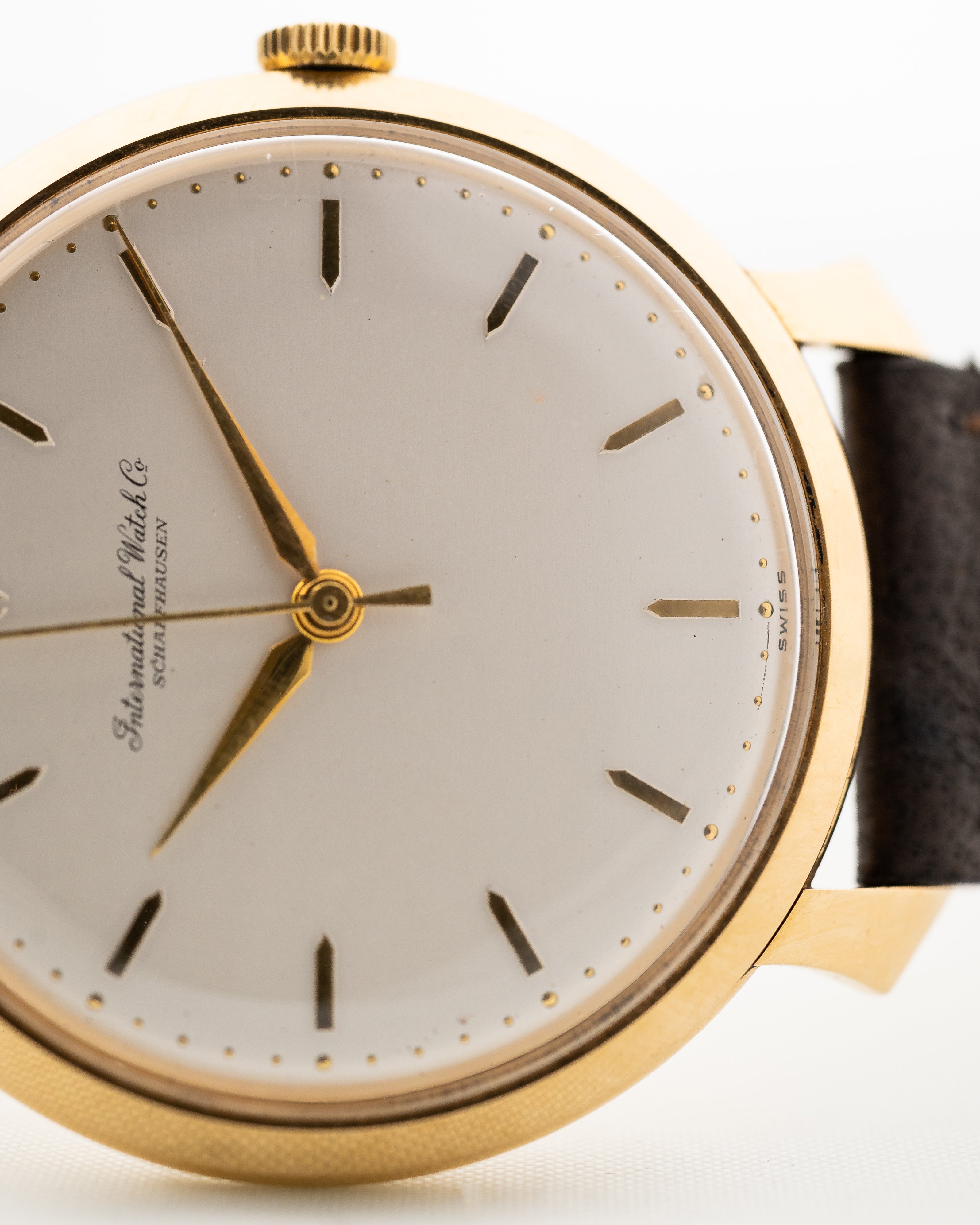 أنتجت IWC مجموعة واسعة جدًا من ساعات اليد منذ وقت مبكر، بدءًا من ساعات الملابس إلى ساعات الطيران. سيظل هذا النموذج، المصنوع من الذهب الأصفر عيار 18 قيراطًا مع عروات زعنفة القرش، من الساعات الثابتة في مجموعات أي شخص، خاصةً أنها تأتي بهذه الحالة الرائعة.