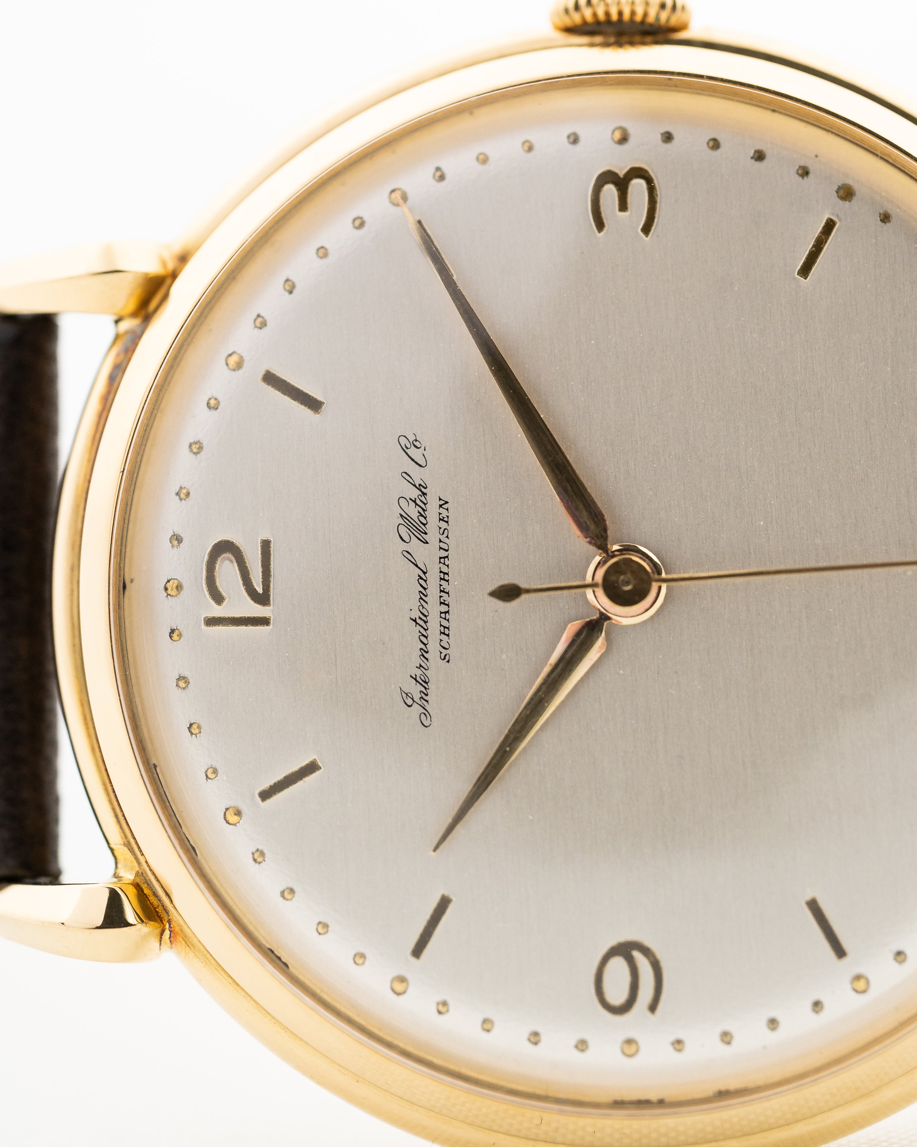 أنتجت IWC مجموعة واسعة جدًا من ساعات اليد منذ وقت مبكر بدءًا من ساعات الملابس إلى ساعات الطيران. سيظل هذا النموذج، المصنوع من الذهب الأصفر عيار 18 قيراطًا مع عروات متدلية المسيل للدموع، من الساعات الثابتة في مجموعات أي شخص، خاصةً أنها تأتي في حالة جيدة جدًا.