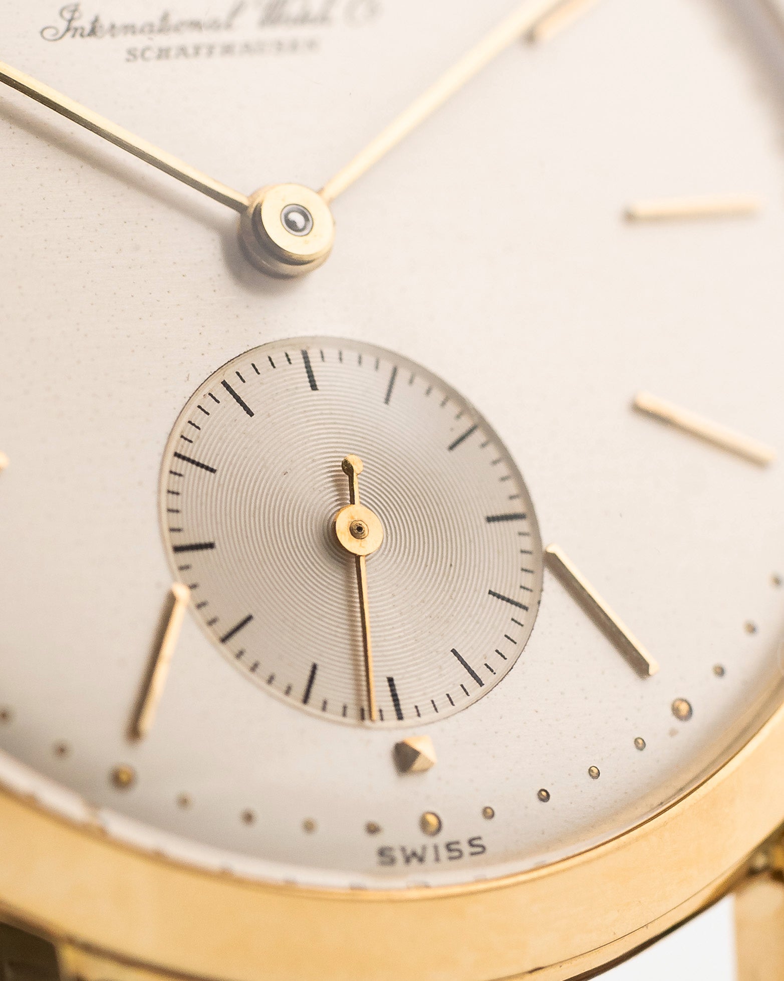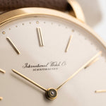 تتميز ساعة IWC المذهلة هذه بتصميم كلاسيكي للثواني الفرعية، وعقارب وعلامات ساعات ذهبية اللون، وميناء بلون فضي نظيف ومزودة بحركة عيار 88 المشهورة. لطالما ارتبط اسم IWC بالبحث عن الجمال في البساطة، ويجسّد هذا المثال هذه الروح من خلال علبة من الذهب الأصفر عيار 18 قيراطًا بقطر 36.5 مم.