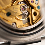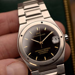 تُمثّل ساعة IWC Ingenieur 3521 الجيل الخامس من هذا الخط الأسطوري - وهي واحدة من أكثر الساعات دقة. صُنعت هذه الساعة المرجعية بين عامي 1993 و2001، وتتميز بكل لغة التصميم المميزة التي تتوقعها: سوار مدمج، وعلبة مصقولة ذات إطار مصقول، وإطار مزود ببراغي ذات فتحات وظيفية - وهي إيماءات إلى تصميم SL الأصلي لجيرالد جينتا.