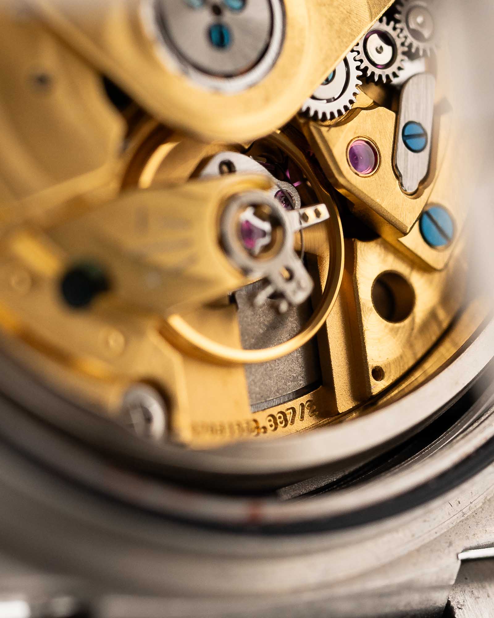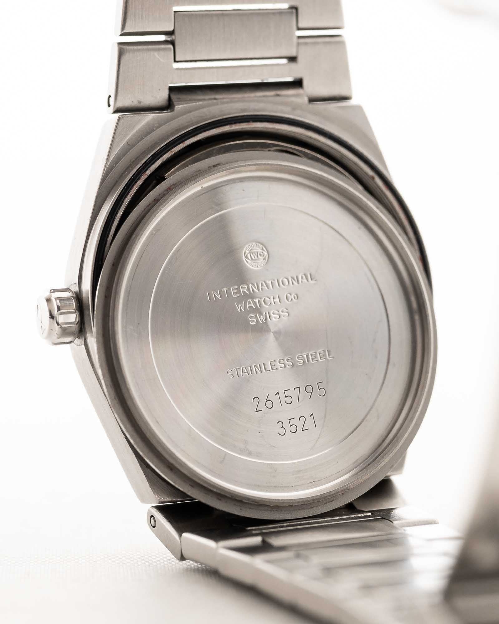 ما الميزة الحقيقية؟ الميناء الأسود شديد اللمعان مع مؤشرات وعقارب ذهبية مزينة بمؤشرات وعقارب ذهبية، مقترنة بنافذة تاريخ دقيقة عند الساعة 3. هذا التوازن بين الهندسة النفعية واللمسات النهائية الفاخرة هو ما يميز ساعة 3521. تعمل هذه القطعة بحركة أوتوماتيكية معتمدة من الكرونومتر (IWC Cal. 887/2)، وتجمع بين الأداء والدقة الجمالية.
