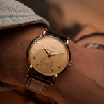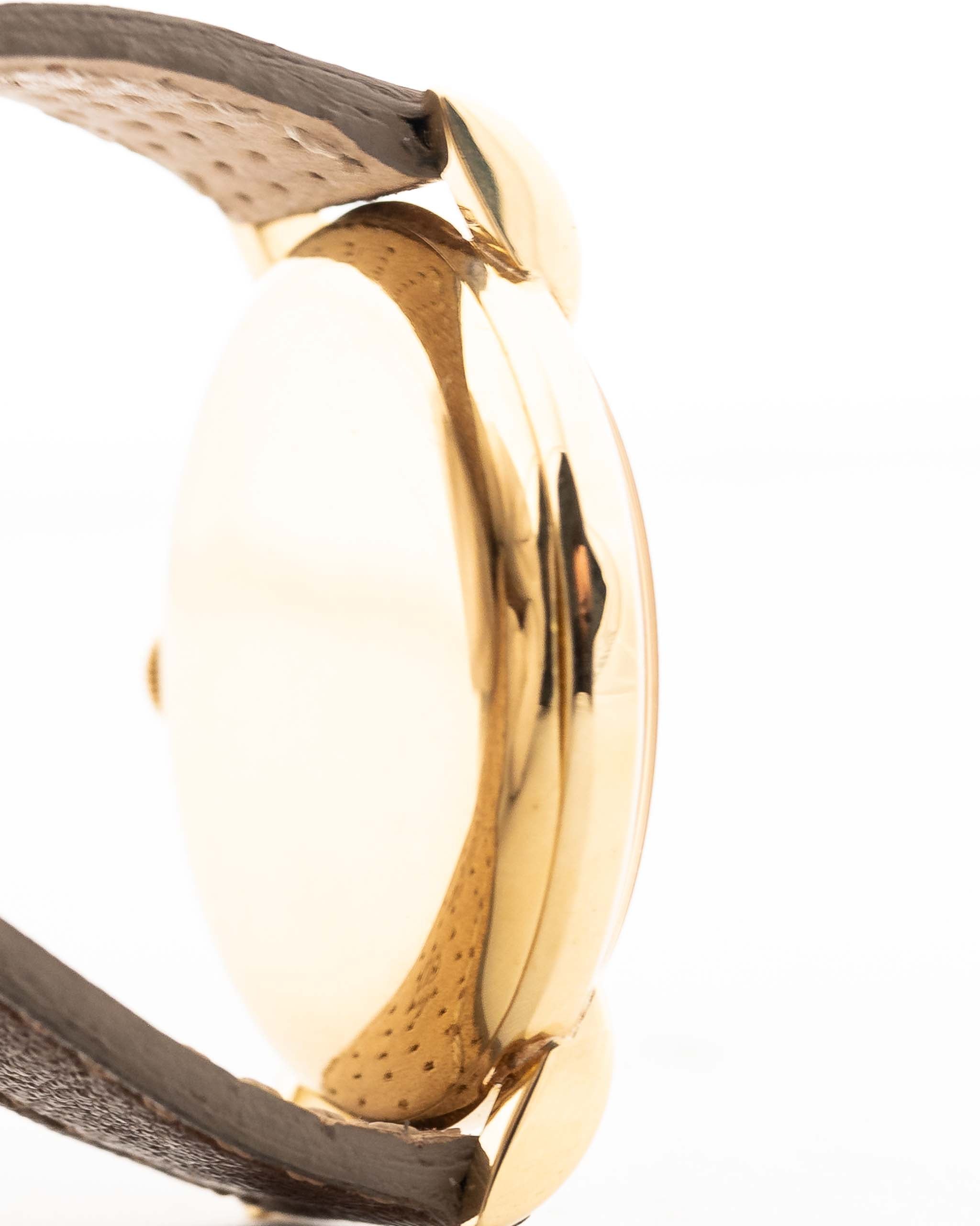 تجسّد ساعة IWC الاستثنائية هذه التي تعود إلى عام 1947 العصر الذهبي لصناعة الساعات السويسرية - حيث تجمع بين السلامة الميكانيكية والتحفظ البصري. تأتي الساعة في علبة كبيرة الحجم من الذهب الأصفر عيار 18 قيراطًا عيار 37 مم، ويزداد تصميمها روعةً بعروات كبيرة على شكل دمعة تضيف حضورًا واتزانًا على المعصم.