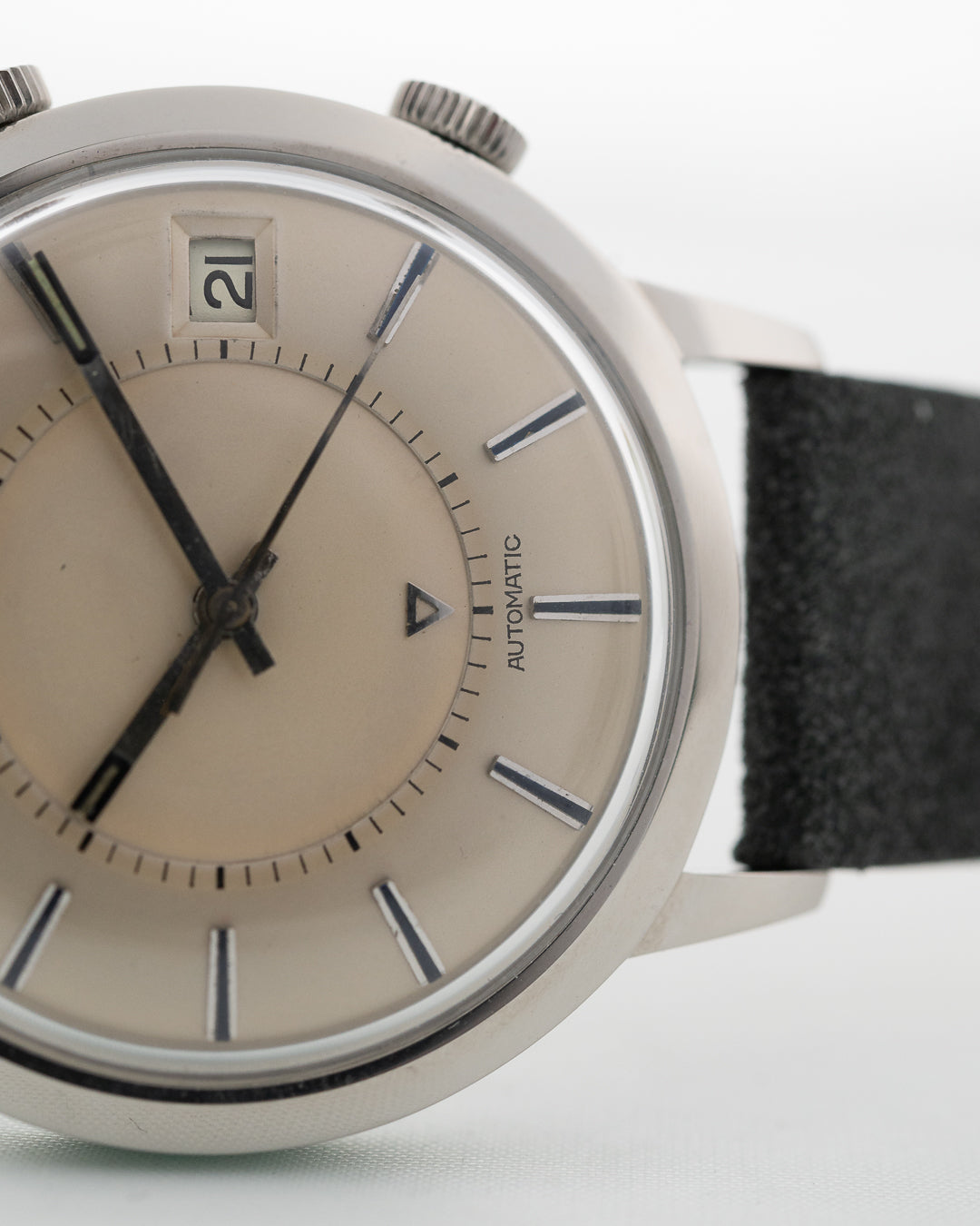إلى جانب ساعة Reverso، ربما تكون Memovox ثاني أكثر ساعات اليد القديمة شهرةً بعد ساعة Reverso، التي اشتهرت بها الدار. لم تكن وظيفة المنبّه مفيدة للغاية فحسب، بل كانت مفيدة للغاية أيضًا. هذا المثال الذي تراه هنا هو الإصدار الأوتوماتيكي المصدوم الذي يعود إلى ستينيات القرن الماضي ويتميز بتصميم نظيف مع وظيفة التاريخ.