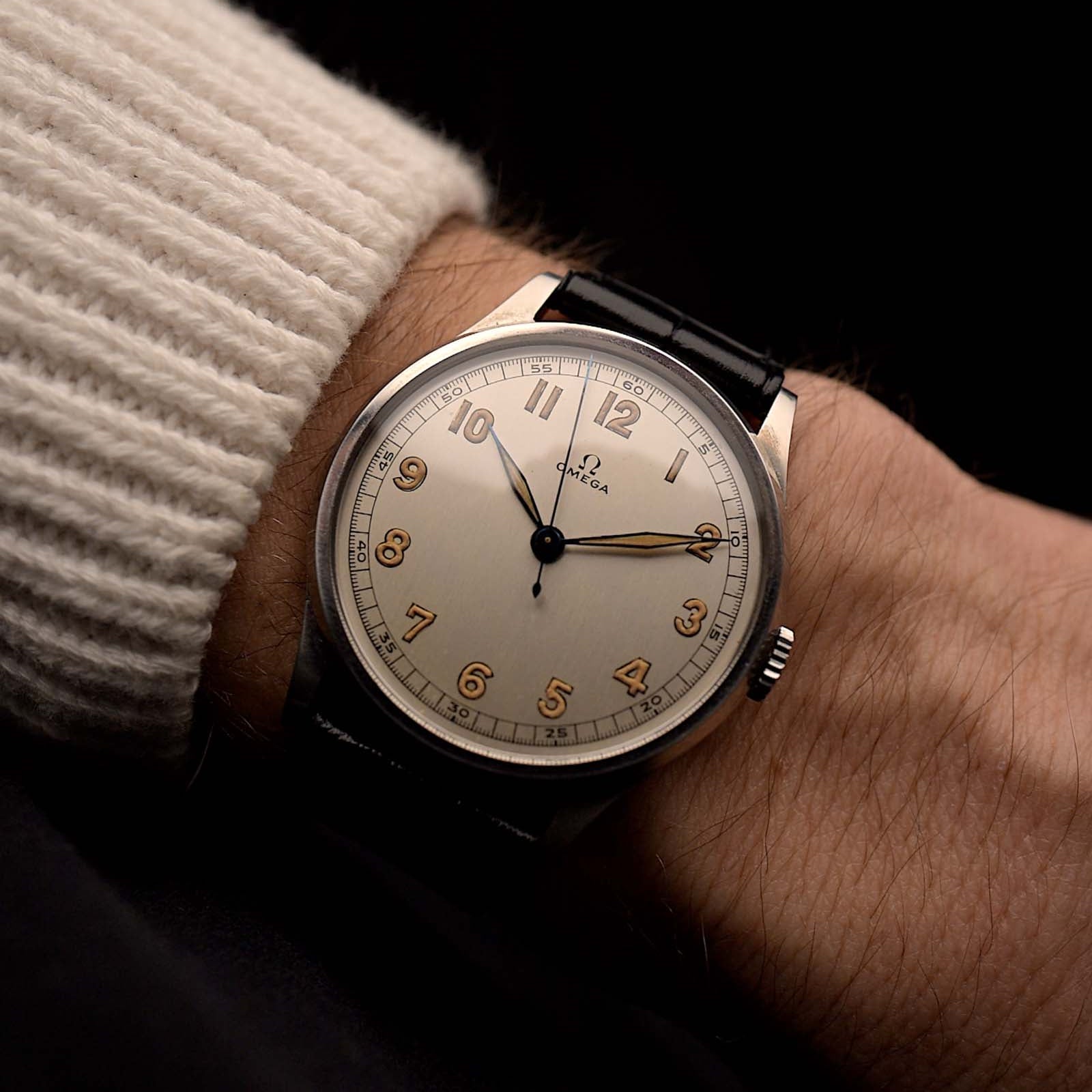 الميناء الأبيض الأصلي في حالة ممتازة، مزود بعقارب وتاج وبلور مناسبين. وفي الداخل، يوجد حرك ية JLC Cal. 486 ذات التعبئة اليدوية، والمعروفة بموثوقيتها وتصميمها الأنيق. هذه الساعة، المزودة بحزام JLC الأصلي ومشبك مطلي بالذهب ودليل استخدام ودبوس ضبط، هي ساعة ذكرى حقيقية لهواة جمع الساعات - فهي نادرة وأنيقة وذات أهمية تاريخية.