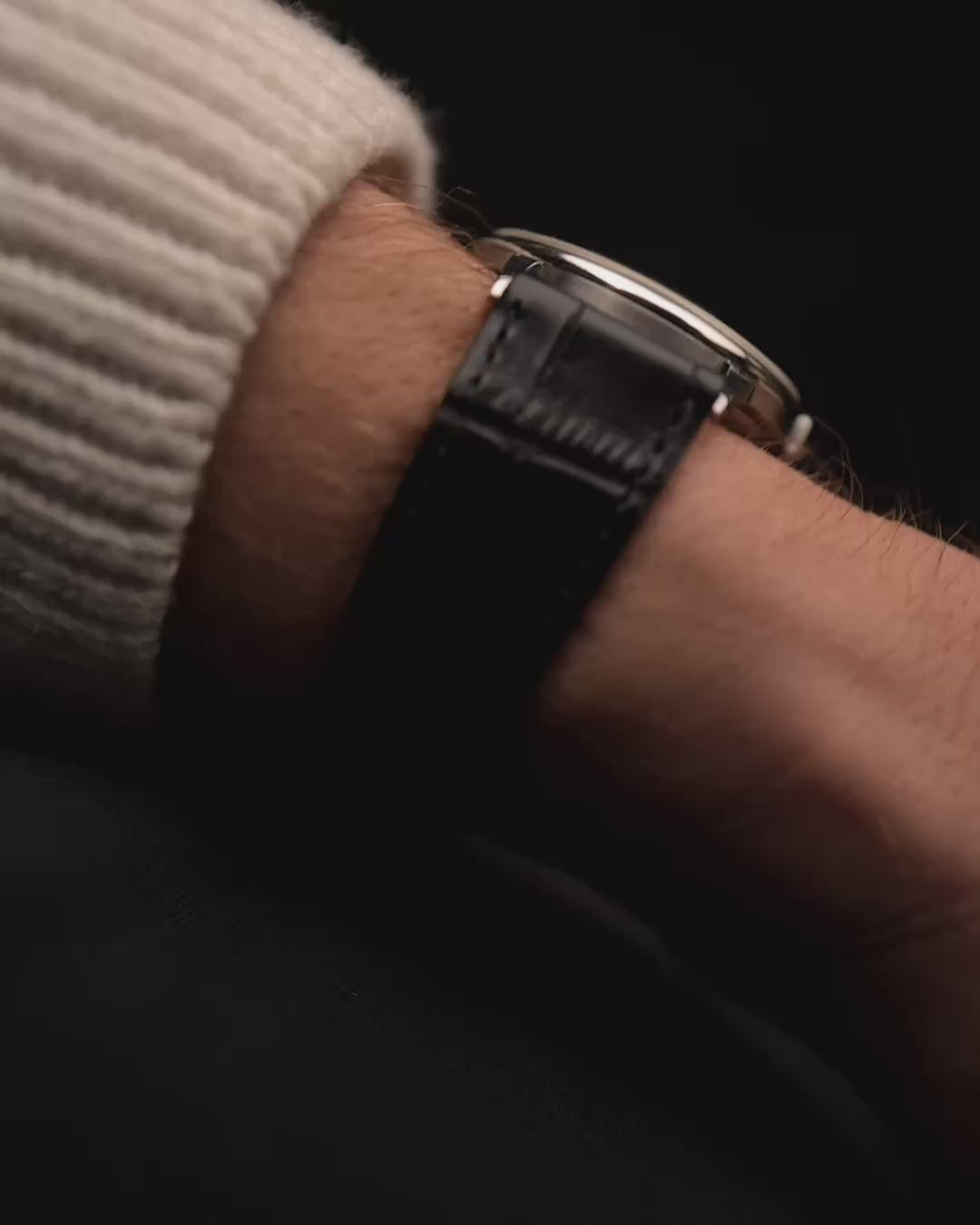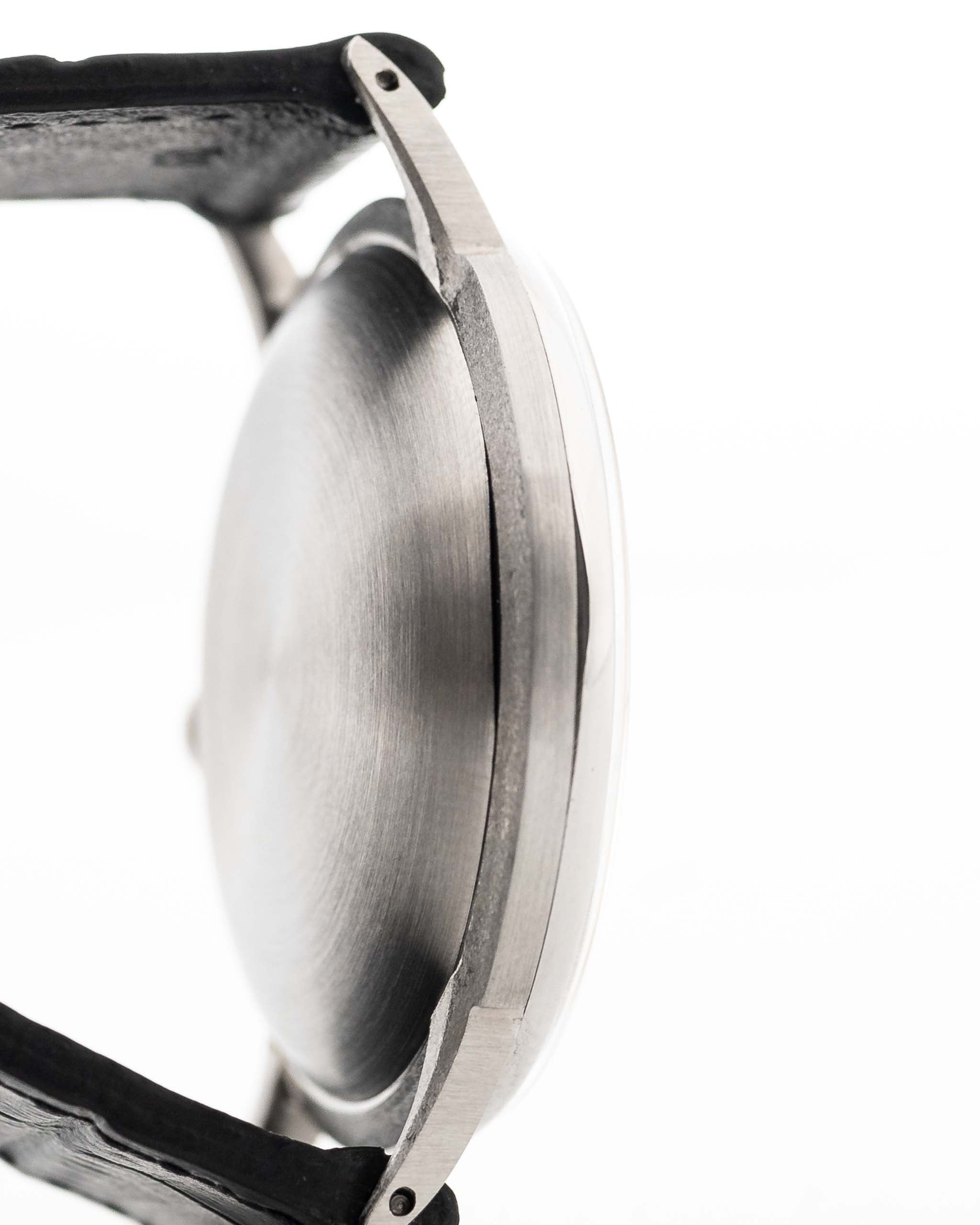 يشعّ الميناء الفضي المصقول بأرقام جريئة على طراز فن الآرت ديكو وعقارب مذهلة من الفولاذ الأزرق على شكل أوراق الشجر بأناقة لا يحدها زمان، بينما تضفي العلبة الفولاذية الفسيحة المصنوعة من الفولاذ المقاوم للصدأ بقطر 37 مم على هذه القطعة حضوراً يتجاوز زمنها بكثير. اعتُبرت الساعة كبيرة الحجم في عصرها، إلا أنها تبدو جميلة حتى بالمعايير الحديثة، وتحافظ على التوازن المثالي بين التناسب والرشاقة.