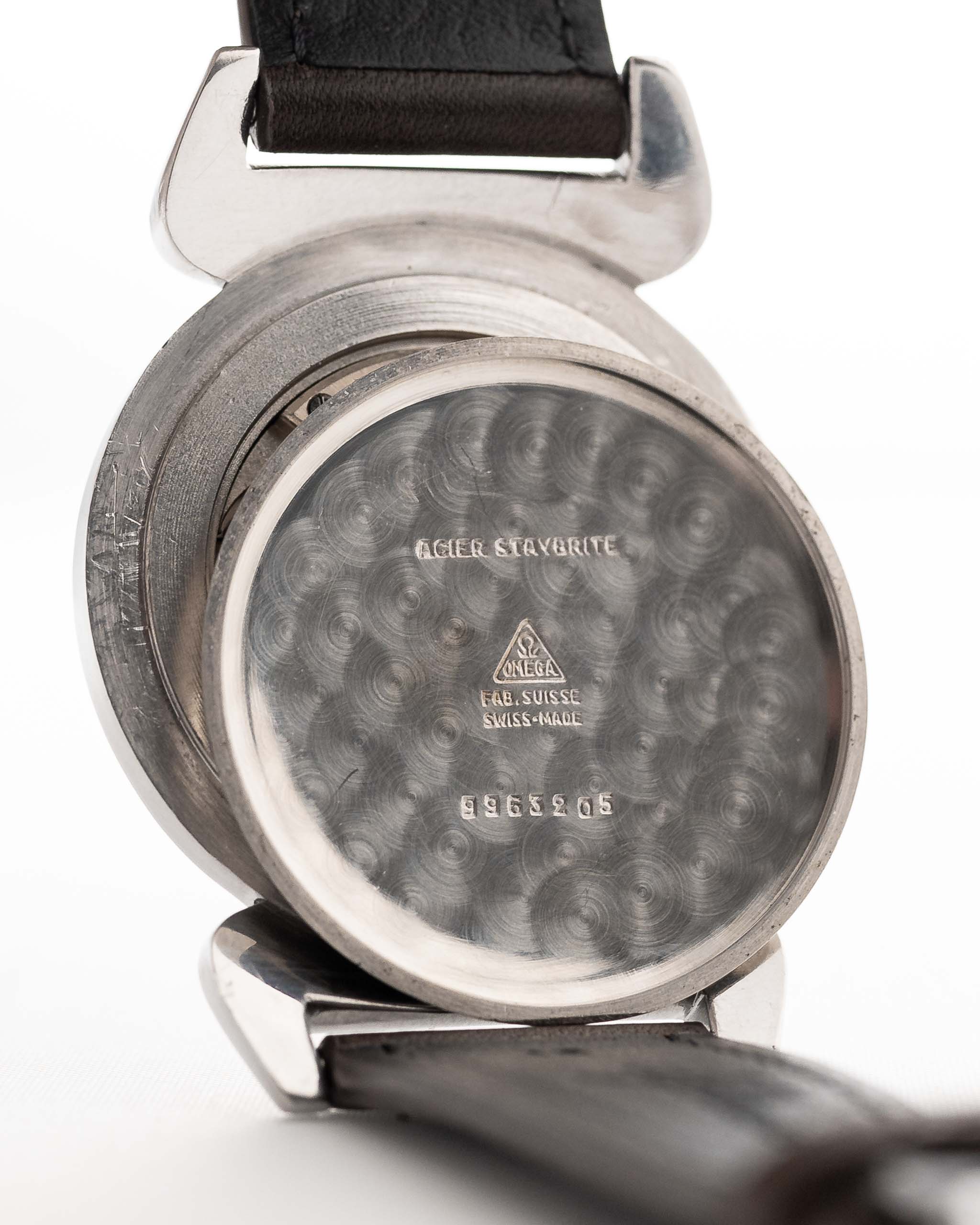تُظهر هذه الأوميغا النادرة والمذهلة من عام 1939 أحد أكثر تصاميم العلب إثارة في حقبة ما قبل الحرب: عروات "الجعران" كبيرة الحجم، التي تمتد من العروة إلى العروة إلى ما يقرب من 50 مم، مما يمنحها حضورًا في المعصم لساعة عصرية بحجم 37-38 مم.