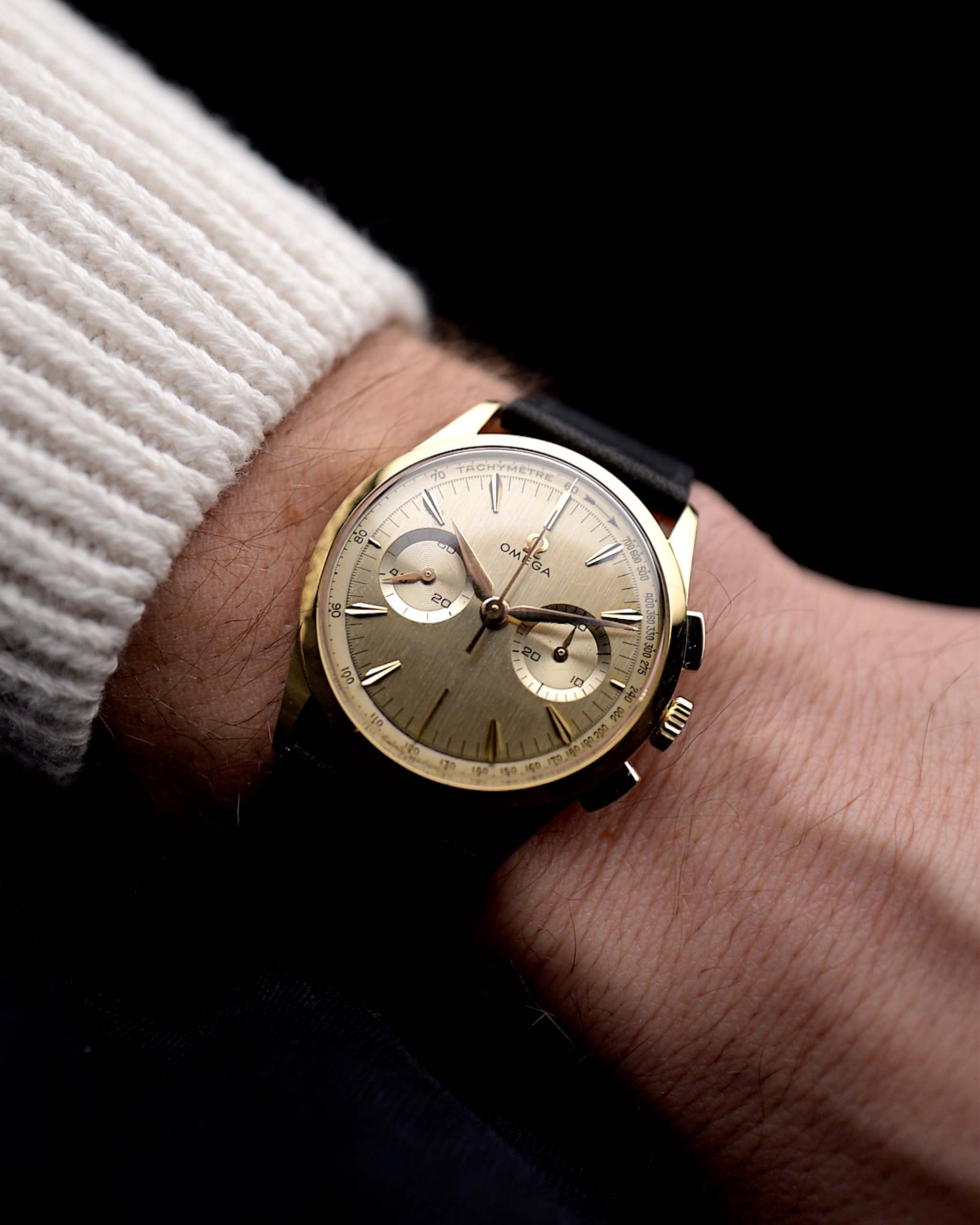اكتشاف نادر للغاية وجوهرة من الماضي - أوميغا كرونوغراف كال. 320 من الذهب الأصفر.