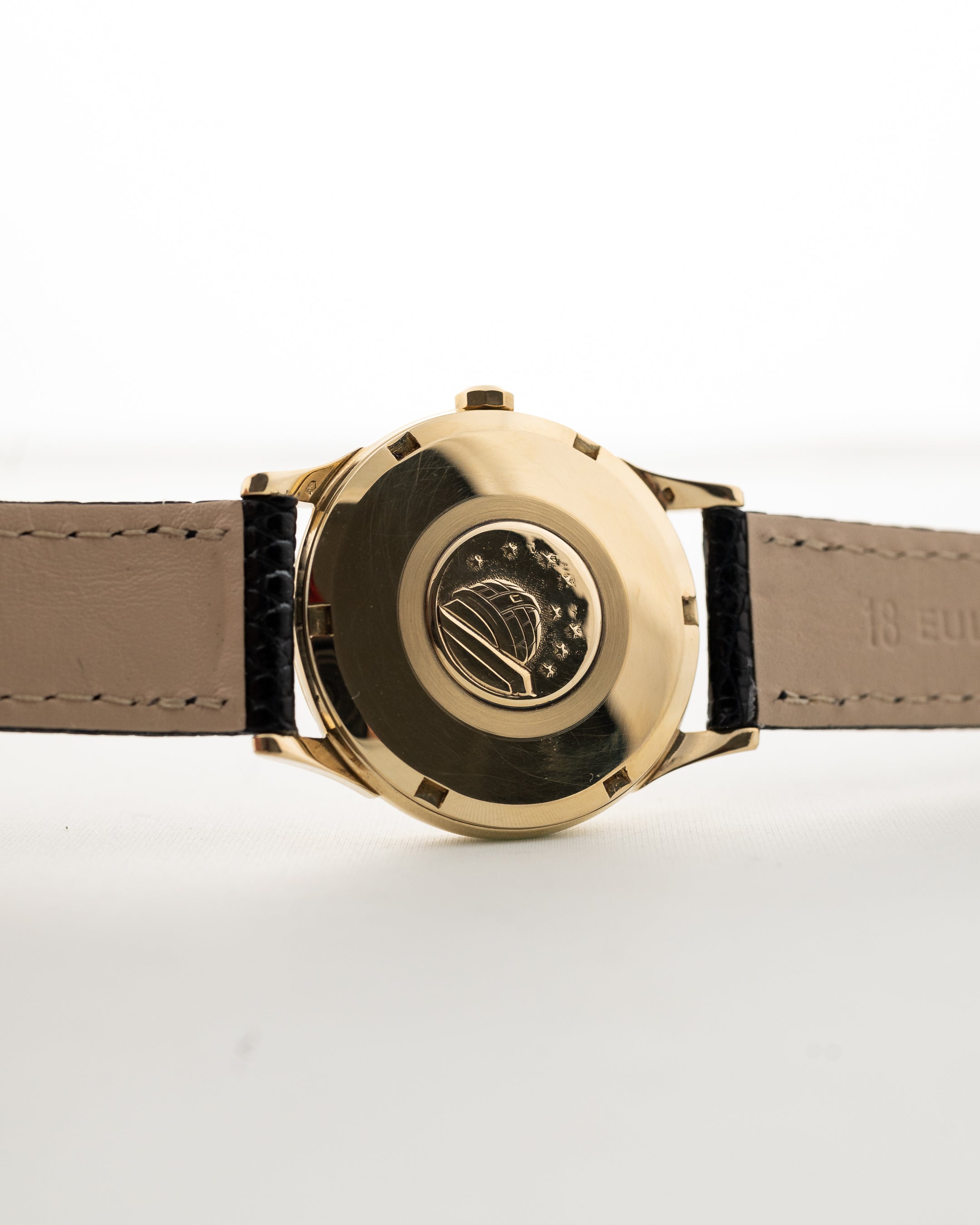 تحتوي ساعة أوميغا كونستيليشن الكرونومتر الأوتوماتيكية المدمجة والجميلة هذه على كل ما تريده في ساعة فستان: علبة من الذهب الأصفر عيار 35 مم عيار 14 قيراطًا، وثوانٍ مركزية، وميناء جميل جدًا من نوع "باي بان" وعلامات ساعات رفيعة نادرة ذات عقيق أونيكس. أُصدرت ساعة كونستيليشن لأول مرة في عام 1952، وكانت ساعة كونستيليشن هي رد أوميغا على ساعة رولكس ديت جست.