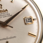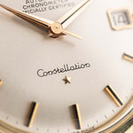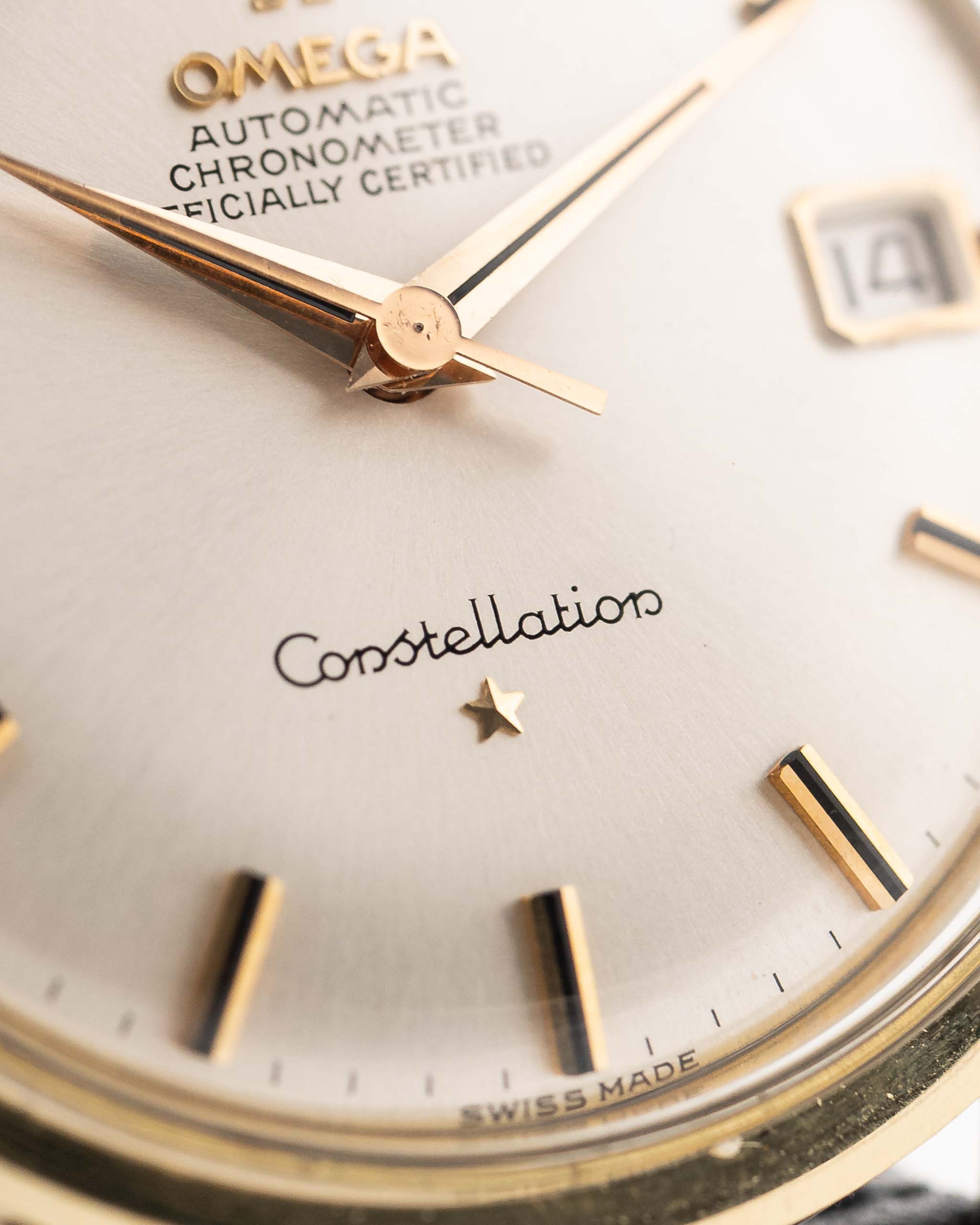 تحتوي ساعة أوميغا كونستيلايشن الكرونومتر الأوتوماتيكية المدمجة والجميلة هذه على كل ما تريده في ساعة فستان: علبة مطلية بالذهب مقاس 36 مم، وثوانٍ في المنتصف، وميناء فضي اللون جميل للغاية وميناء فضي اللون وعلامات ساعات رفيعة نادرة مع ترصيع من العقيق اليماني. أُصدرت ساعة كونستيليشن لأول مرة في عام 1952، وكانت ساعة كونستيليشن هي رد أوميغا على ساعة رولكس ديت جست.