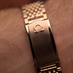 • سوار أوميغا الأصلي النادر المطلي بالذهب الوردي "خرز الأرز" النادر يناسب مقاس المعصم حتى 19 سم/سمك 3 مم