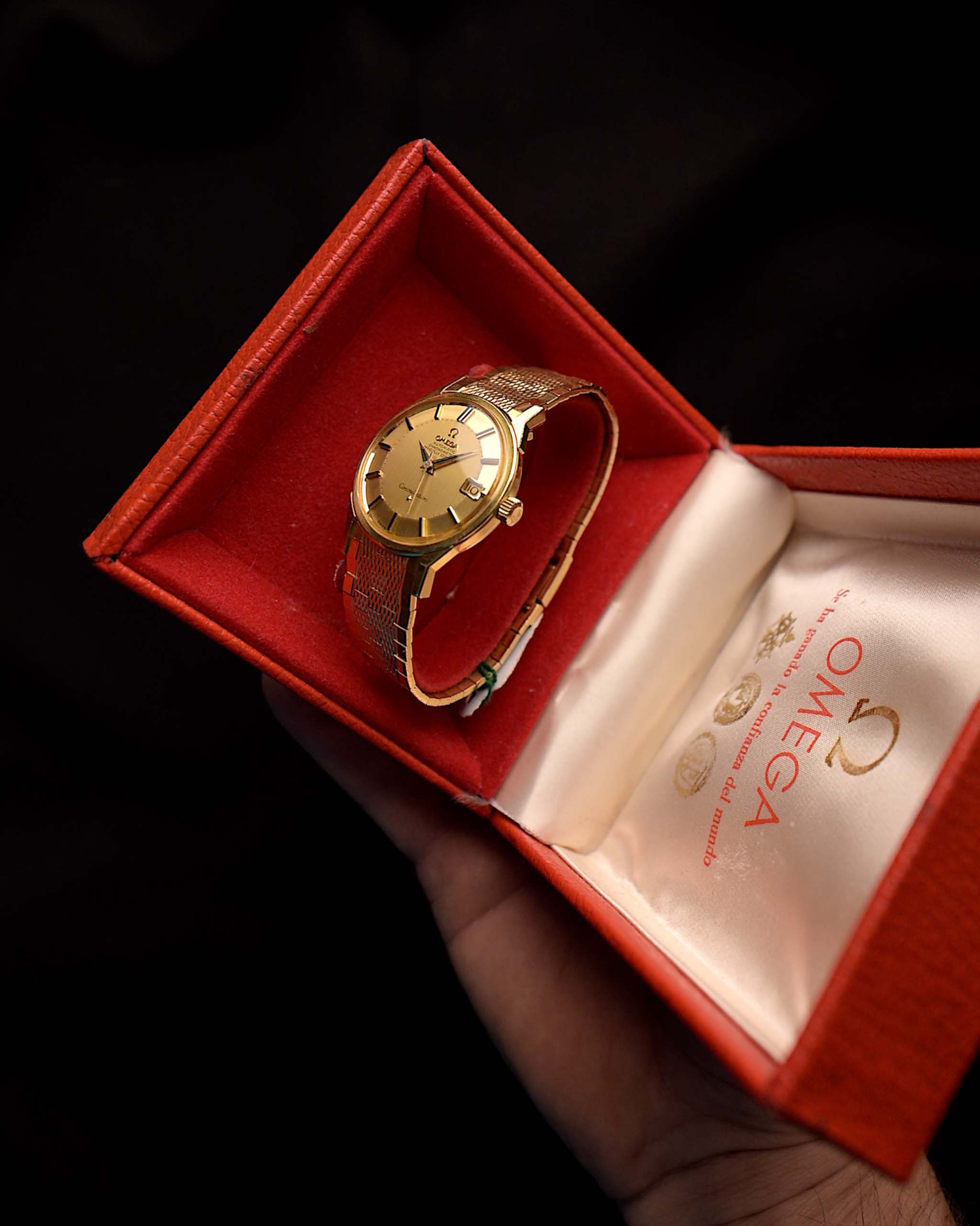 داجوستو من؟ منذ أواخر الخمسينيات إلى السبعينيات، غطّت D'Agosto سوق أمريكا الجنوبية بإنتاج الأساور للعديد من صانعي الساعات المشهورين، وذلك لتجنّب ضرائب الاستيراد. وبوجود ختم D'A على الجزء الداخلي من المشبك يمكننا تحديد أن أوميغا سلّمت هذه الساعة Constellation إلى فنزويلا في أواخر الخمسينيات.