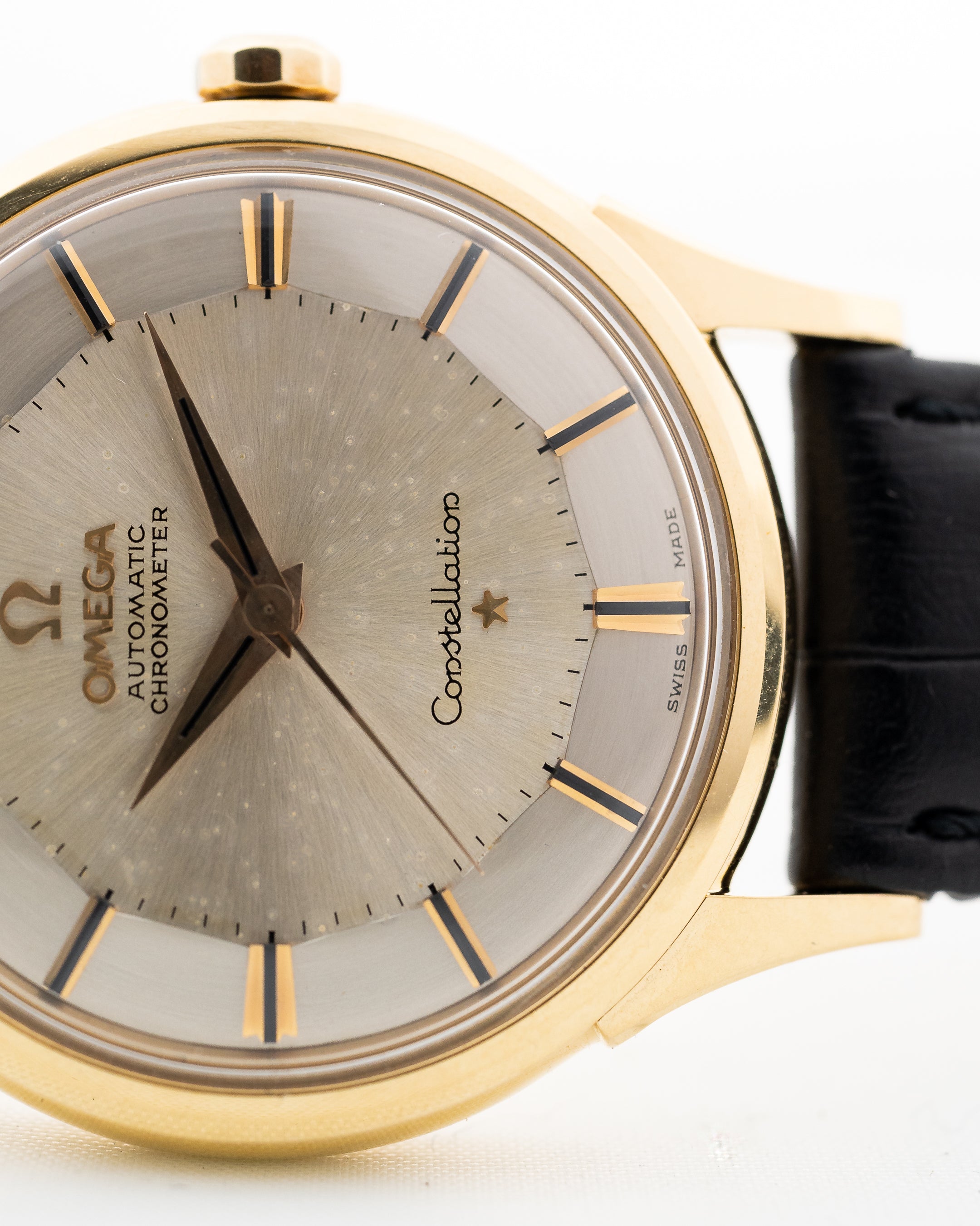 تحتوي ساعة أوميغا كونستيليشن الكرونومتر الأوتوماتيكية المدمجة والجميلة هذه على كل ما تريده في ساعة فستان: علبة من الذهب الأصفر عيار 35 مم عيار 14 قيراطًا، وثوانٍ مركزية، وميناء جميل جدًا من نوع "باي بان" وعلامات ساعات رفيعة نادرة ذات عقيق أونيكس. أُصدرت ساعة كونستيليشن لأول مرة في عام 1952، وكانت ساعة كونستيليشن هي رد أوميغا على ساعة رولكس ديت جست.