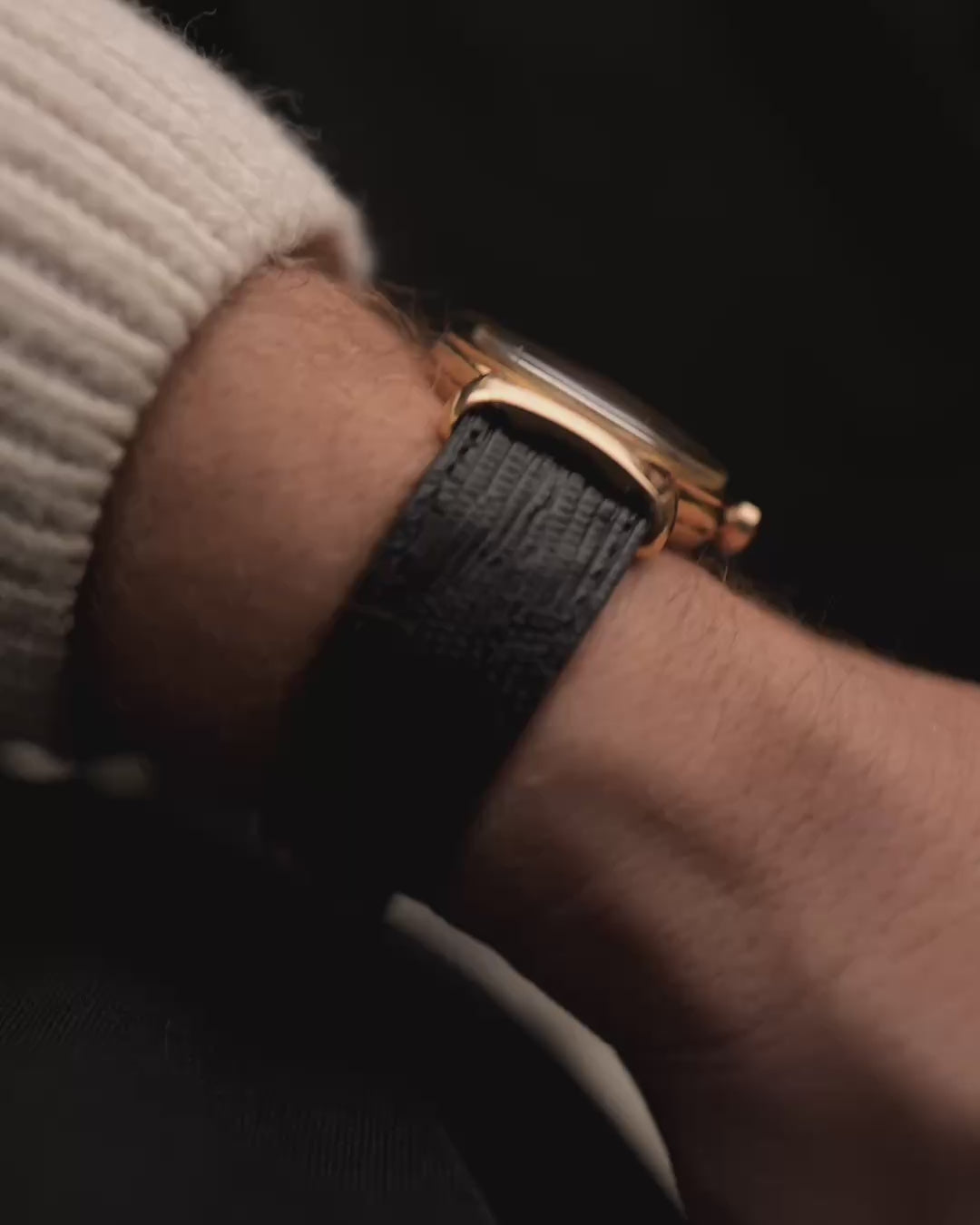 وتضفي العروات المغطاة المميزة ذوقًا معماريًا مميزًا، بينما يختم ظهر العلبة المثبت لولبيًا وتاج أوميغا الأصلي الحزمة بسحرها الأصلي.